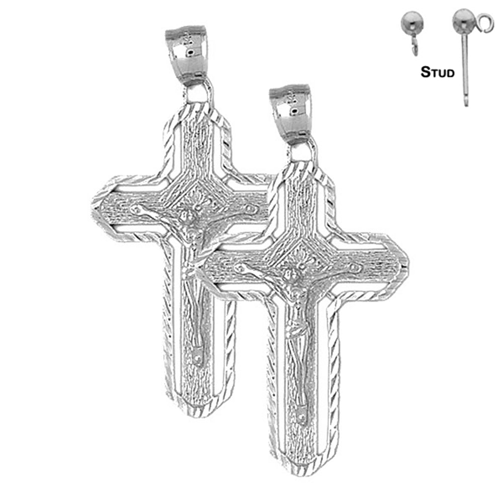 Presentamos nuestros impresionantes aretes con crucifijo enrutado de plata de ley de 48 mm, disponibles en su elección de chapado en oro blanco o amarillo. Estos exquisitos aretes son un verdadero testimonio de la artesanía, con cada detalle meticulosamente diseñado y fabricado en los Estados Unidos.