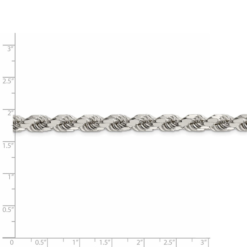 Sterling Silver 7mm Diamond-cut Polished Rope Chain