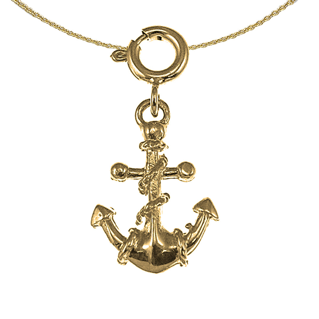 Yellow Gold-plated Silver Anchor With Rope Pendant