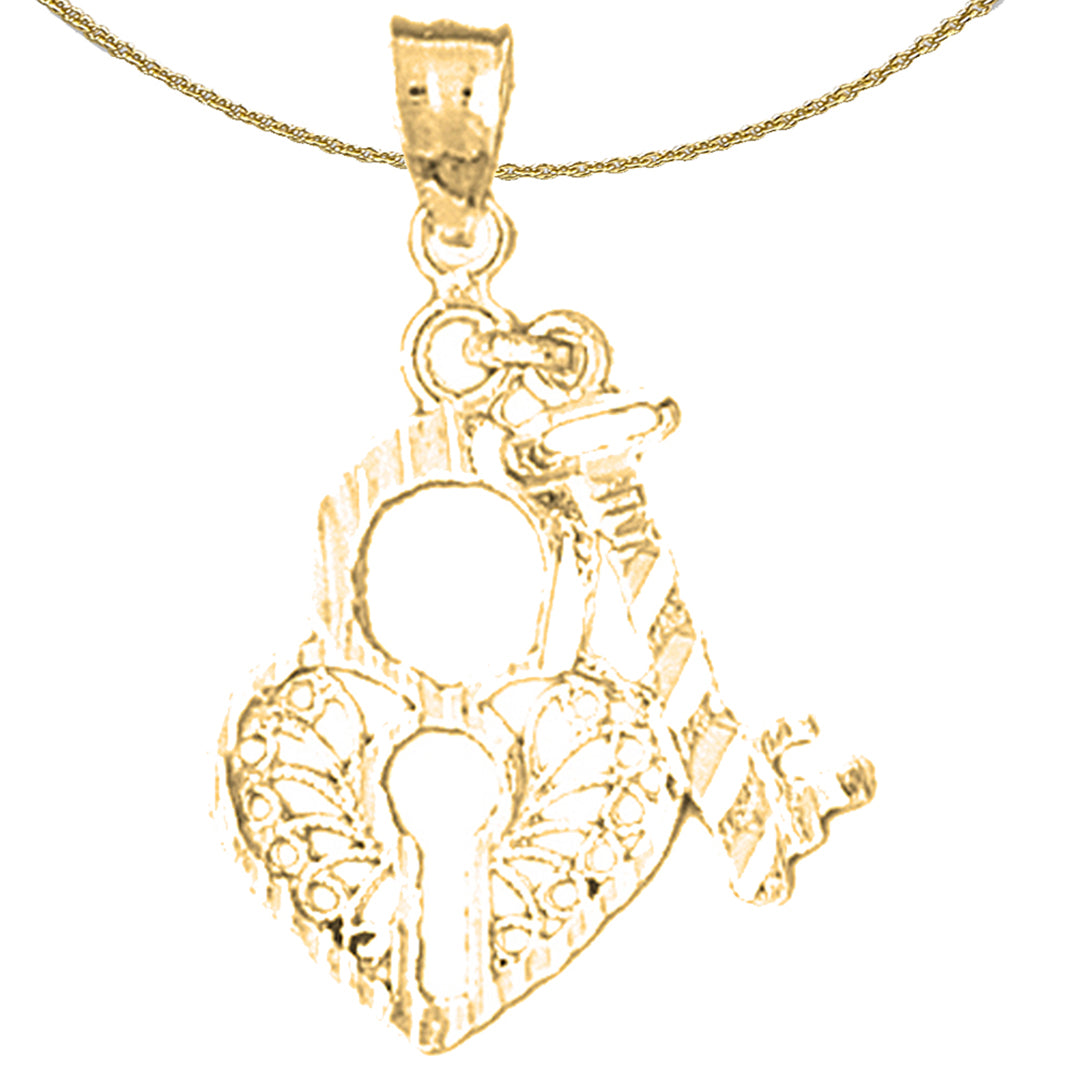 Yellow Gold-plated Silver Heart Lock And Key Pendant