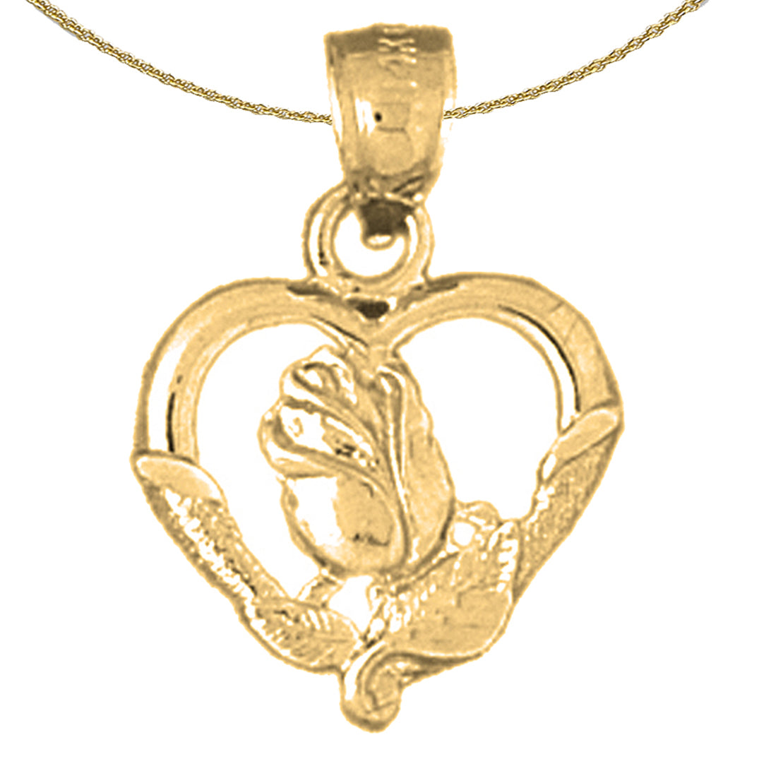 Yellow Gold-plated Silver Heart With Rose Pendant