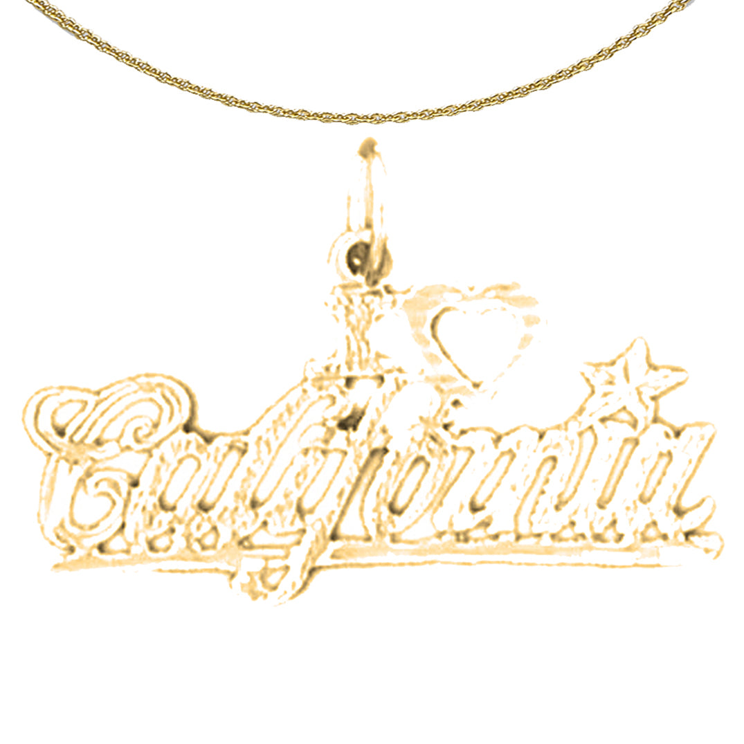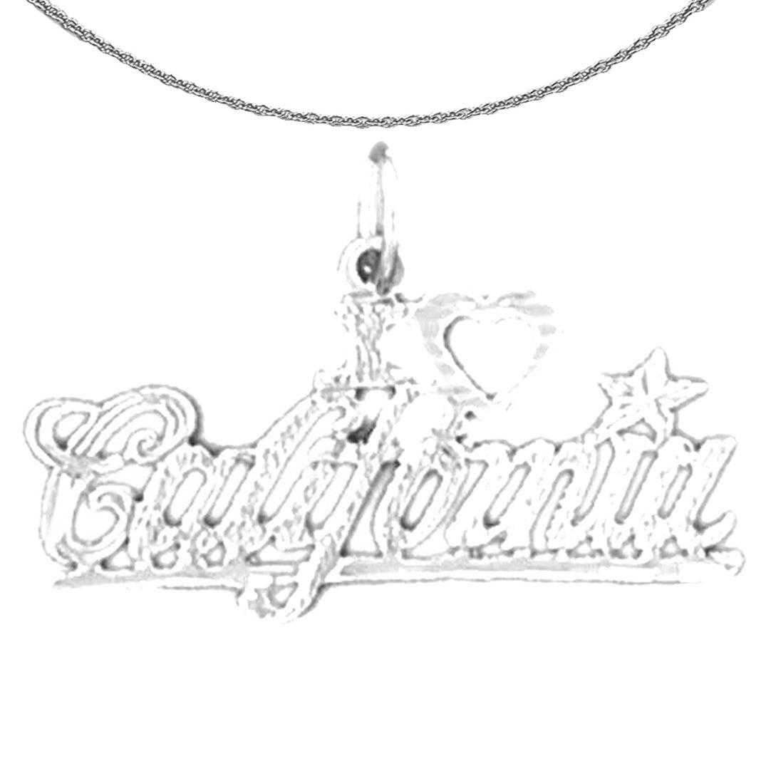 Colgante I Love California de plata de ley (bañado en rodio o oro amarillo)