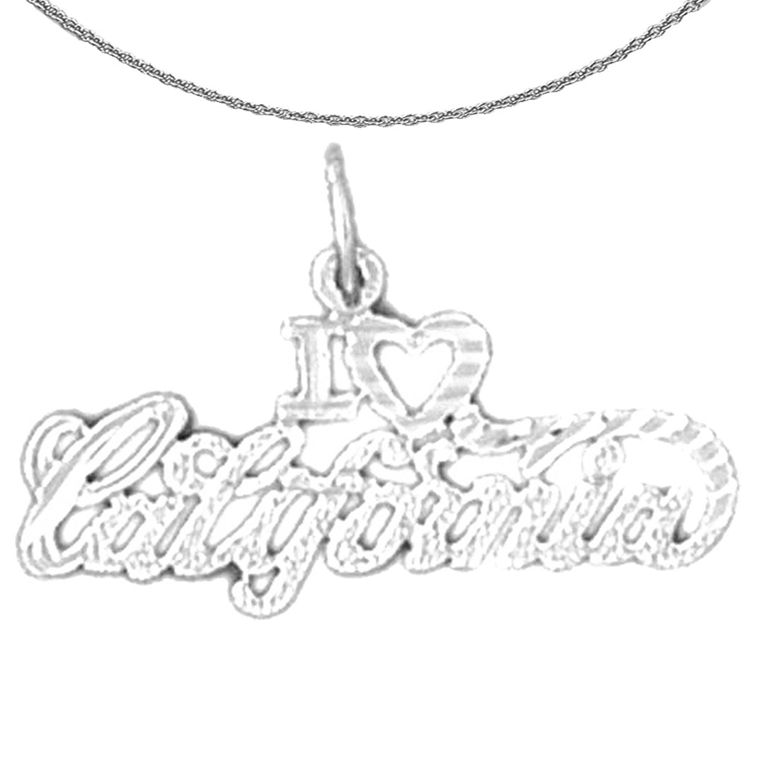 Colgante I Love California de plata de ley (bañado en rodio o oro amarillo)