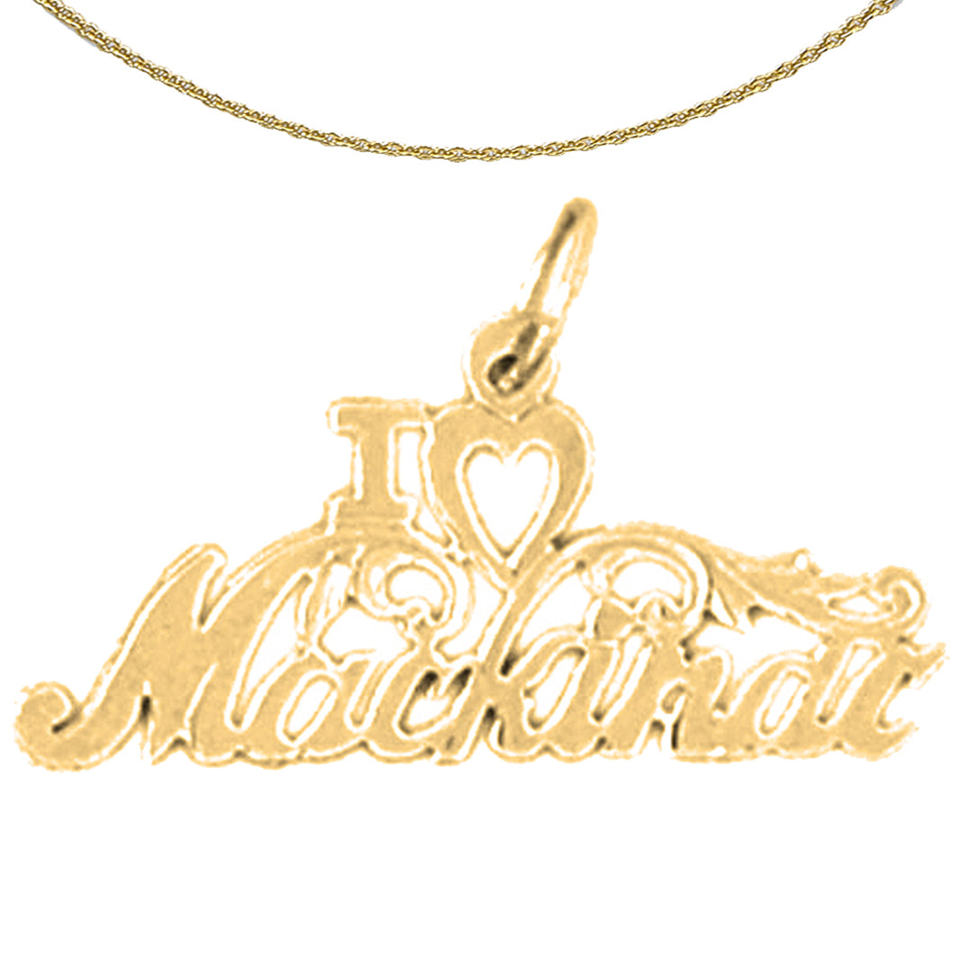 Colgante I Love Mackinac de plata de ley (bañado en rodio o oro amarillo)