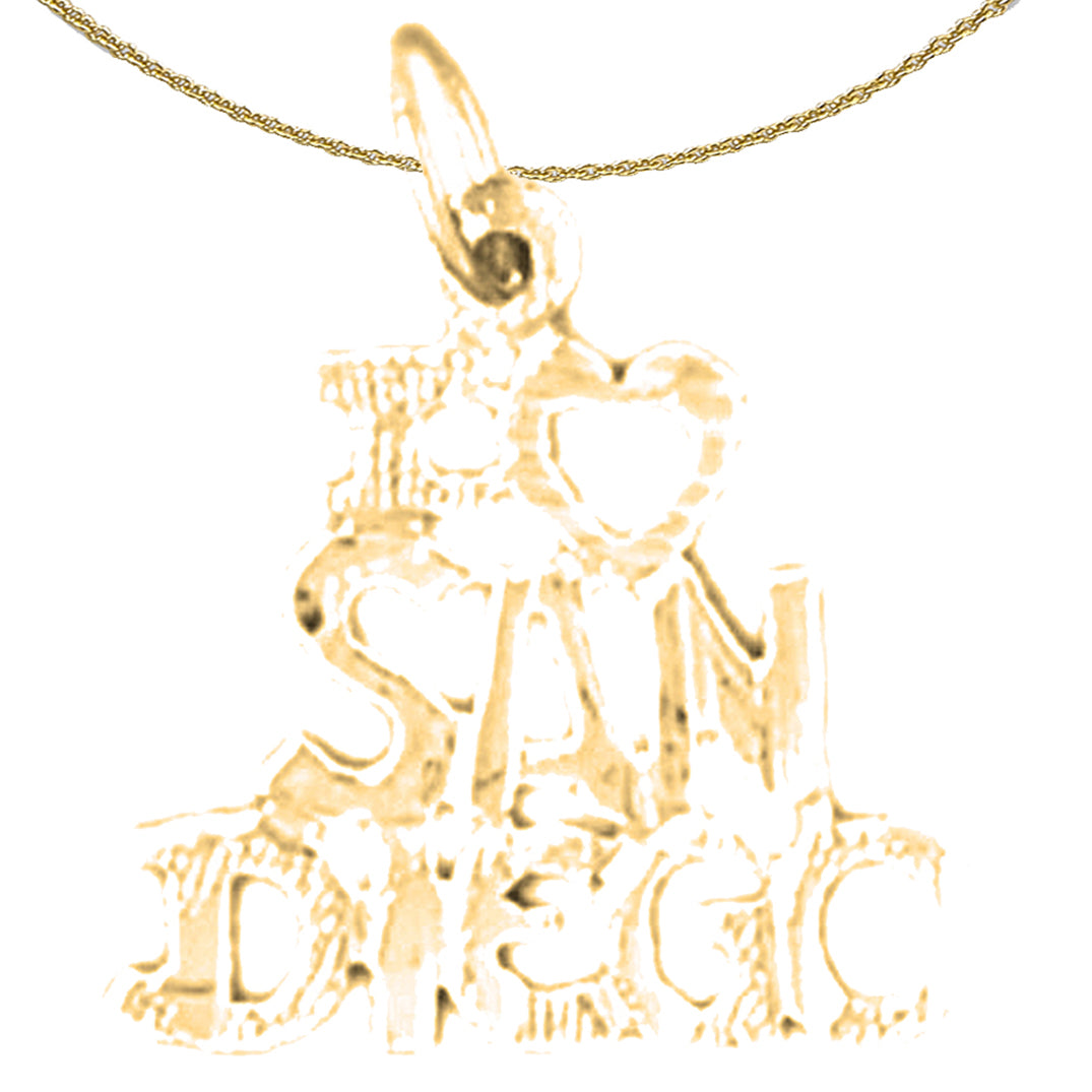Yellow Gold-plated Silver I Love San Diego Pendant