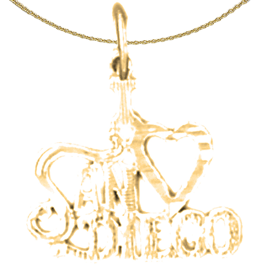 Yellow Gold-plated Silver I Love San Diego Pendant