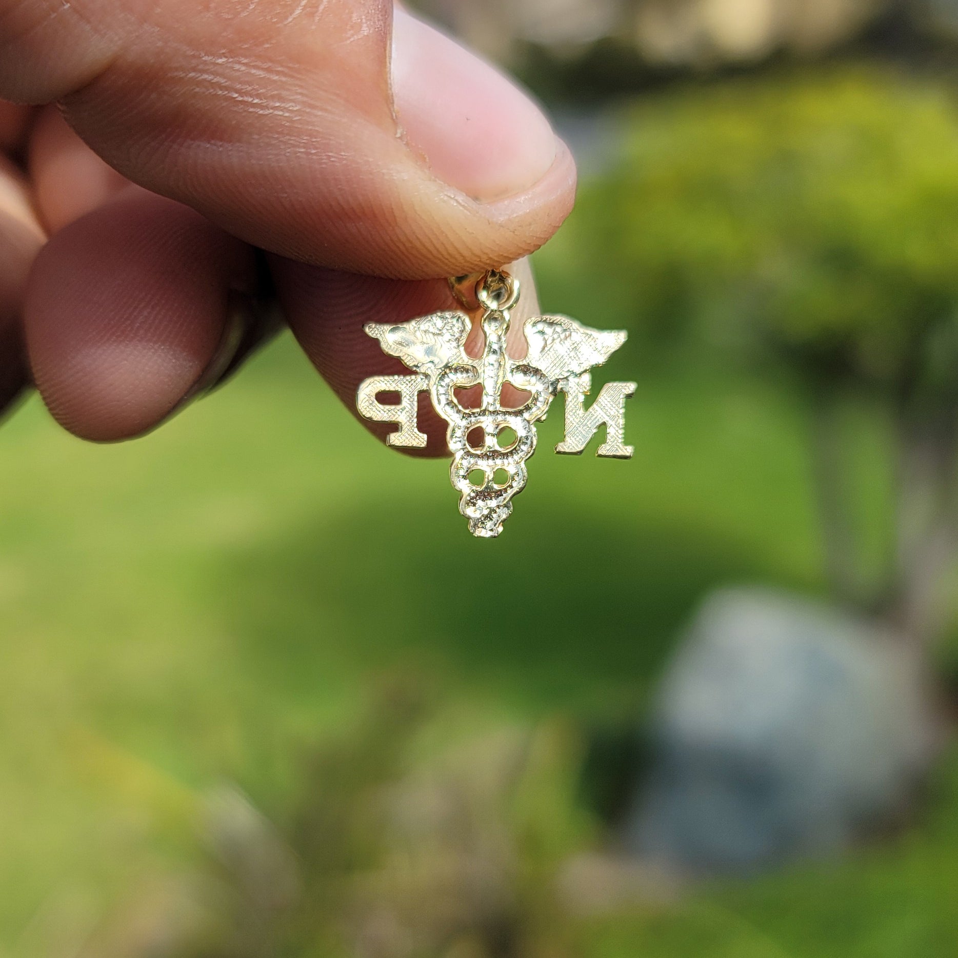 Colgante de plata de ley Np Nurse Practitioner (chapado en rodio o oro amarillo)