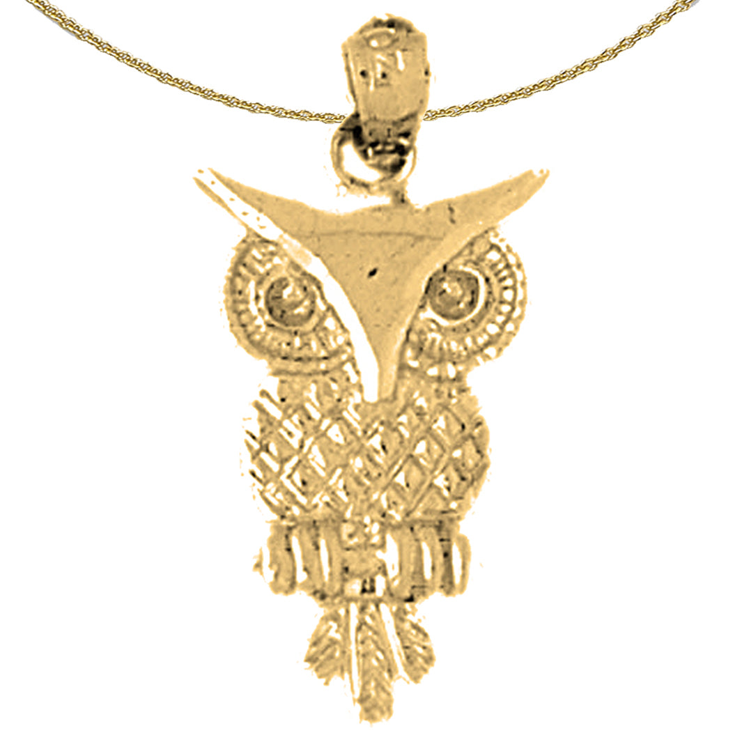 Colgante de búho de plata de ley (bañado en rodio o oro amarillo)