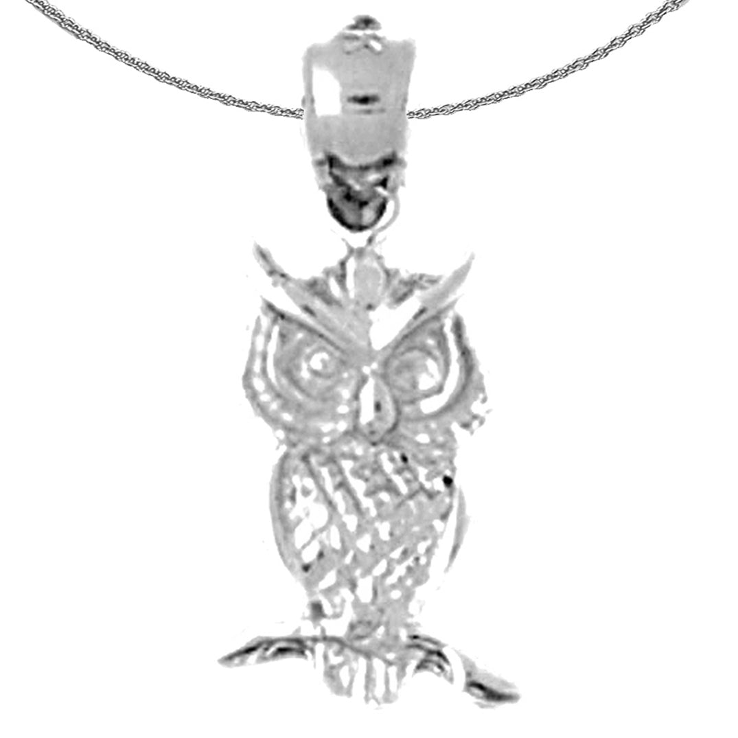 Colgante de búho de plata de ley (bañado en rodio o oro amarillo)