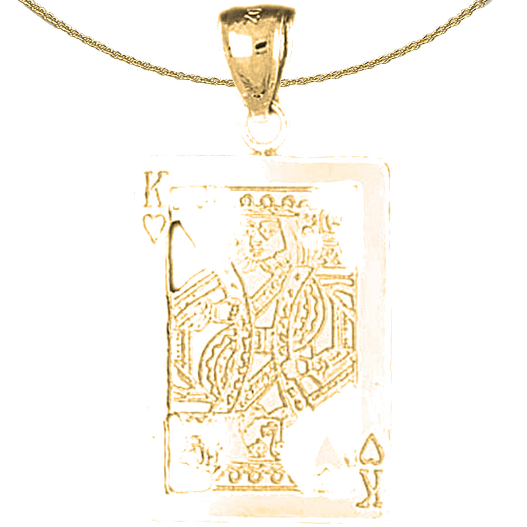 Naipes de plata de ley, colgante de rey de corazones (bañado en rodio o oro amarillo)