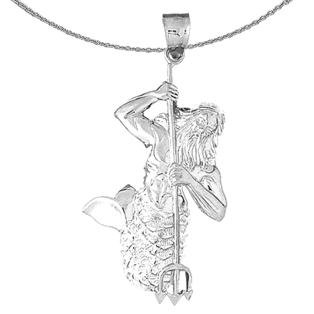 Este sofisticado colgante de Poseidón está elaborado en plata de ley y está disponible chapado en rodio...