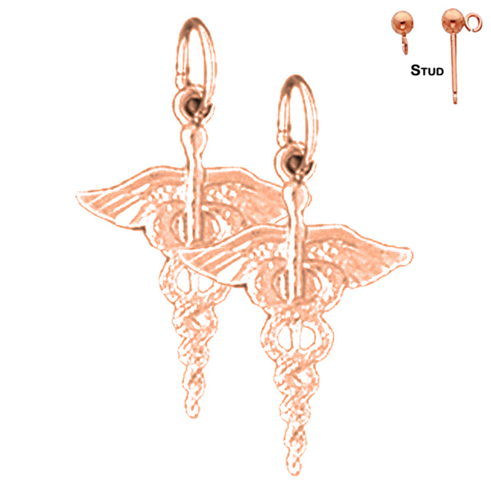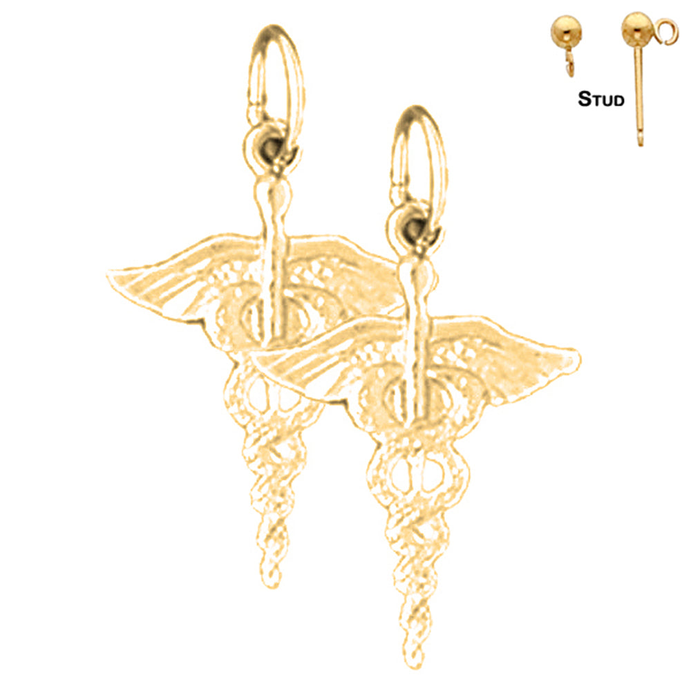 14K or 18K Gold Caduceus Earrings