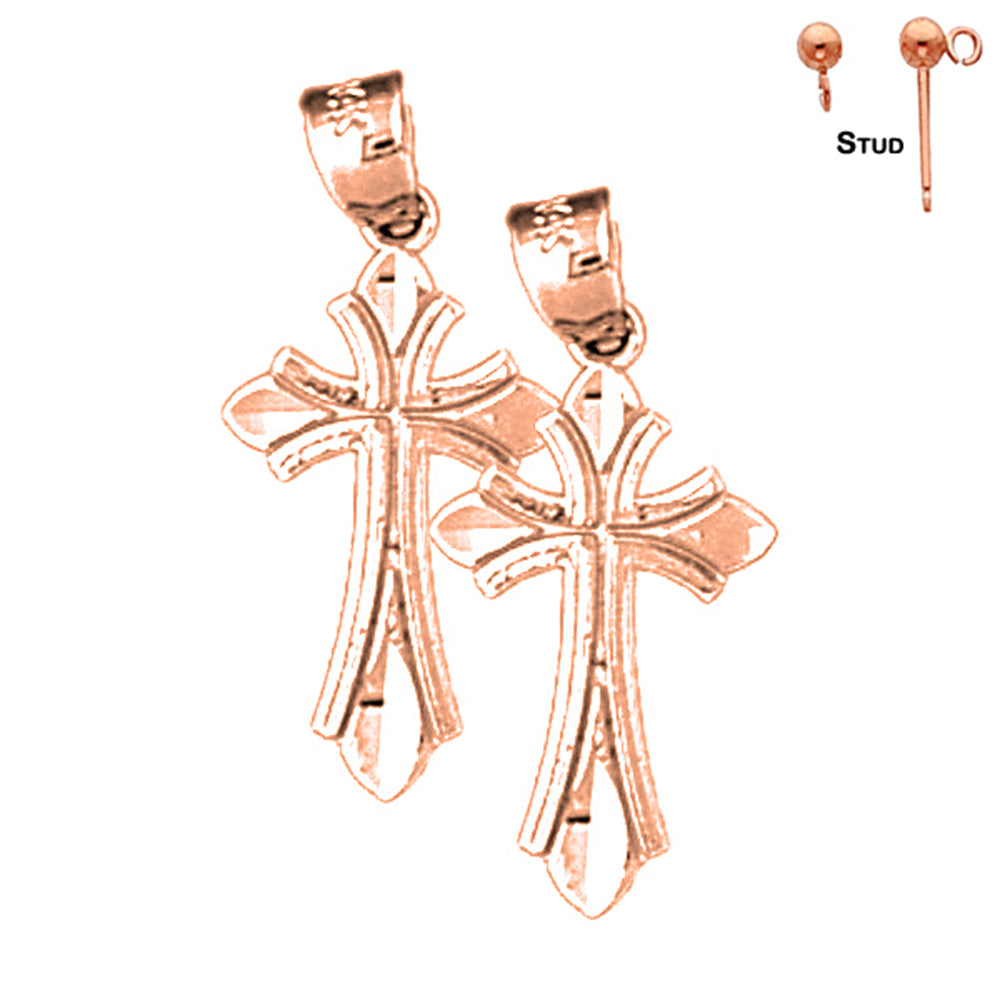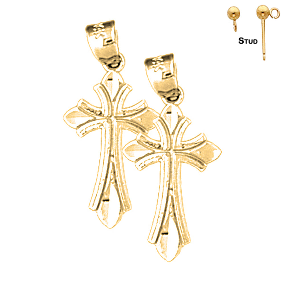 14K or 18K Gold 23mm Budded Cross Earrings