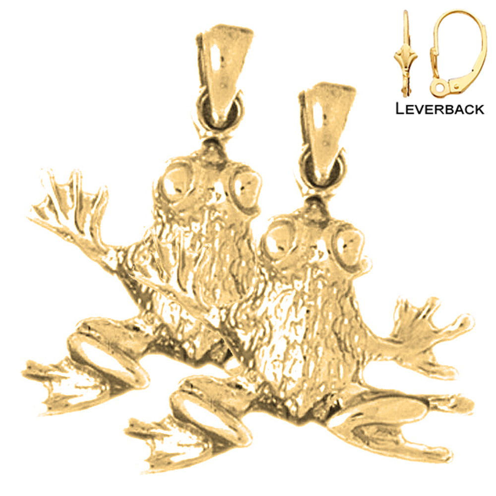 This is a stunning 14k yellow gold 24mm frog earrings. This 14k yellow gold earrings measures 24 mm in length by 22 mm width. JewelsObsession creates all gold jewelry in our state of the art manufacturing facility.