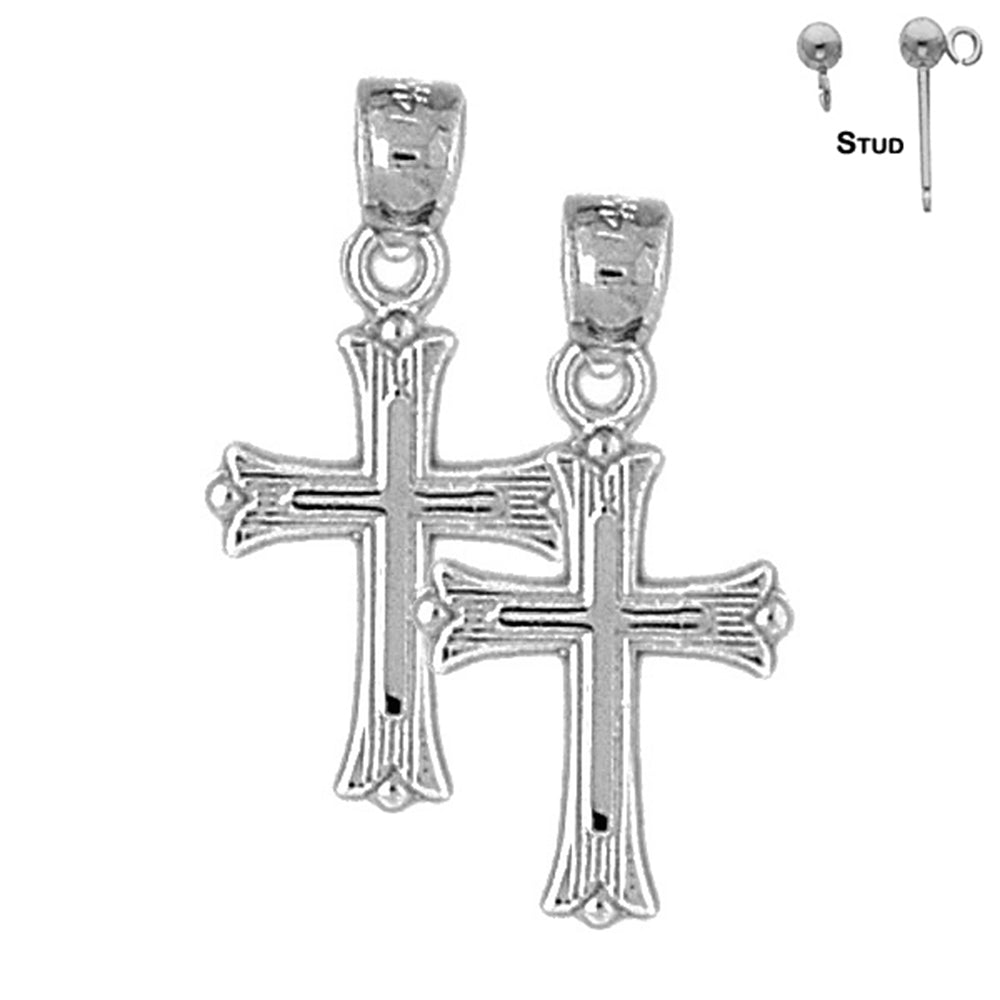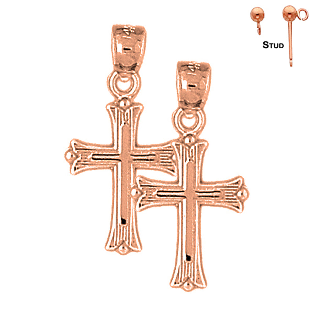 14K or 18K Gold 25mm Budded Cross Earrings