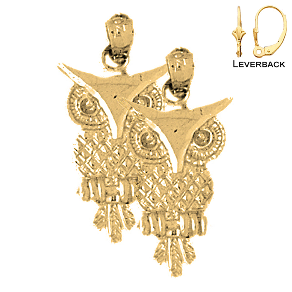 This is a stunning 14k yellow gold 26mm owl earrings. This 14k yellow gold earrings measures 26 mm in length by 13 mm width. JewelsObsession creates all gold jewelry in our state of the art manufacturing facility.