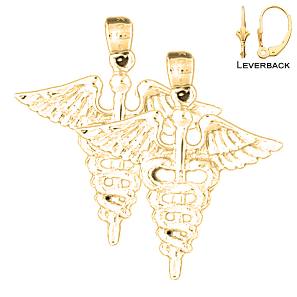This is a stunning 14k yellow gold 28mm caduceus earrings. This 14k yellow gold earrings measures 28 mm in length by 26 mm width. JewelsObsession creates all gold jewelry in our state of the art manufacturing facility.