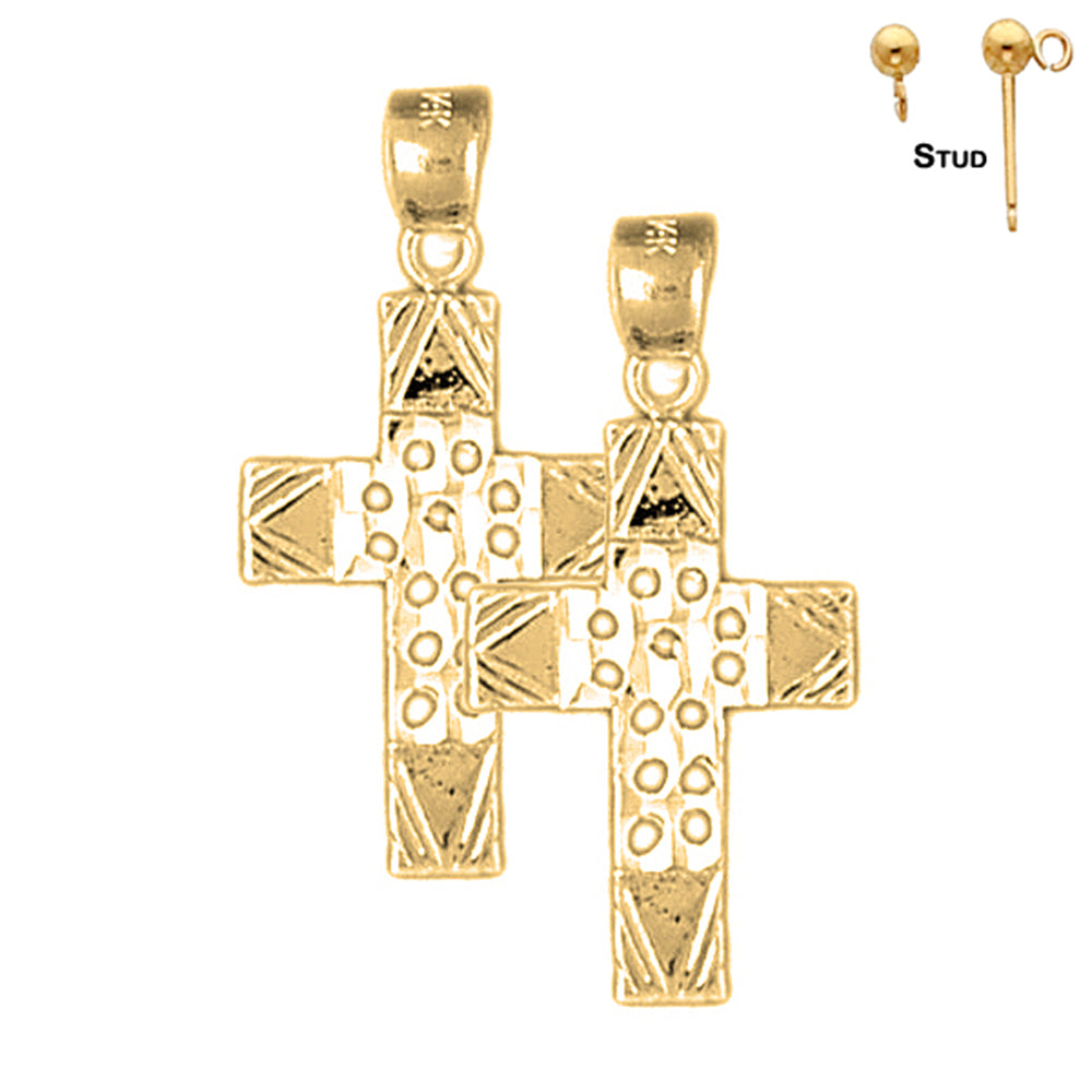 This is a stunning 14k yellow gold 29mm latin cross earrings. This 14k yellow gold earrings measures 29 mm in length by 14 mm width. JewelsObsession creates all gold jewelry in our state of the art manufacturing facility.