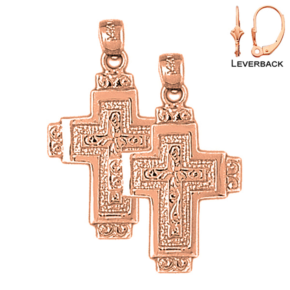 This is an elegant 14k yellow gold 29mm latin cross earrings. This 14k yellow gold earrings measures 29 mm in length by 18 mm width. JewelsObsession creates all gold jewelry in our state of the art manufacturing facility.