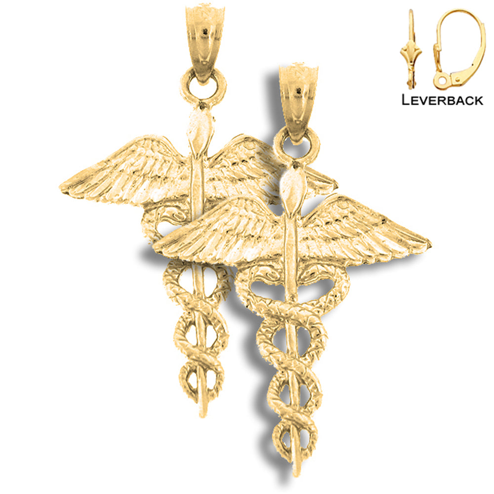 This is a gorgeous 14k yellow gold 30mm caduceus earrings. This 14k yellow gold earrings measures 30 mm in length by 19 mm width. JewelsObsession creates all gold jewelry in our state of the art manufacturing facility.
