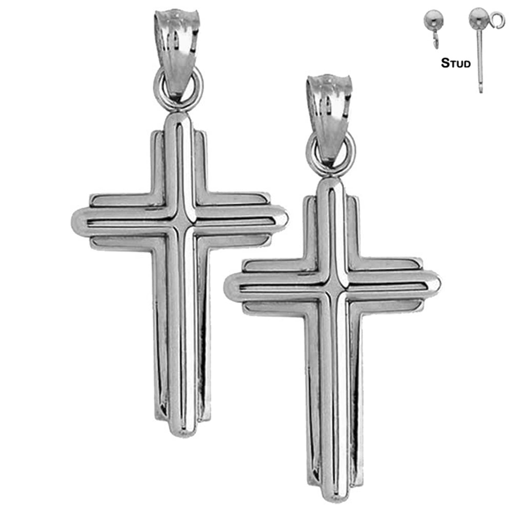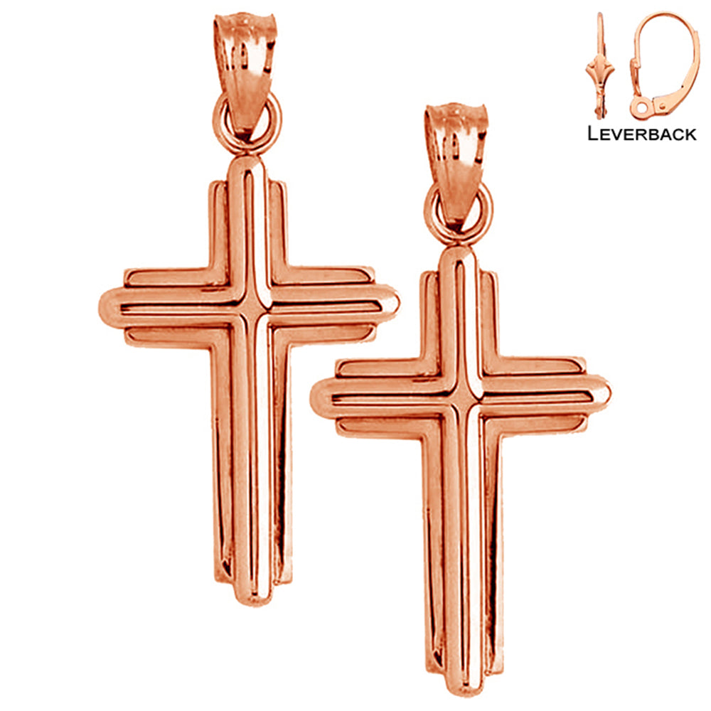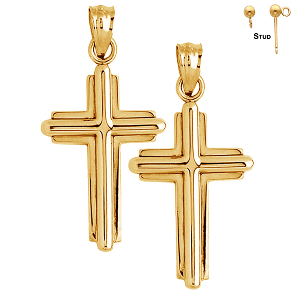 This is a beautiful 14k yellow gold 30mm latin cross earrings. This 14k yellow gold earrings measures 30 mm in length by 14 mm width. JewelsObsession creates all gold jewelry in our state of the art manufacturing facility.