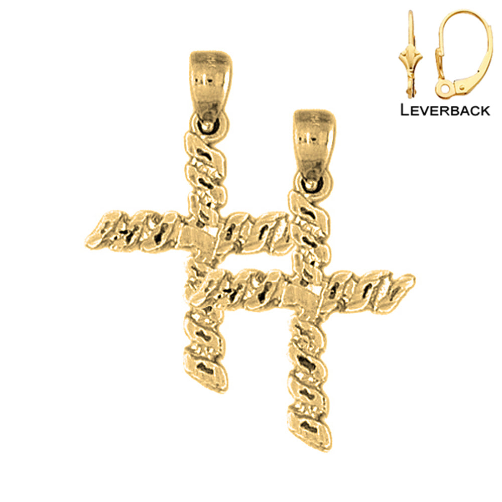 This is an elegant 14k yellow gold 30mm latin cross earrings. This 14k yellow gold earrings measures 30 mm in length by 20 mm width. JewelsObsession creates all gold jewelry in our state of the art manufacturing facility.