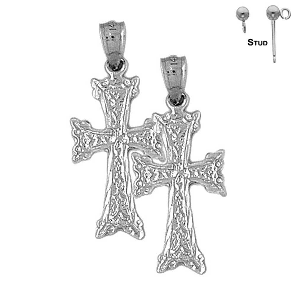 This is a beautiful 14k yellow gold 31mm budded cross earrings. This 14k yellow gold earrings measures 31 mm in length by 13 mm width. JewelsObsession creates all gold jewelry in our state of the art manufacturing facility.