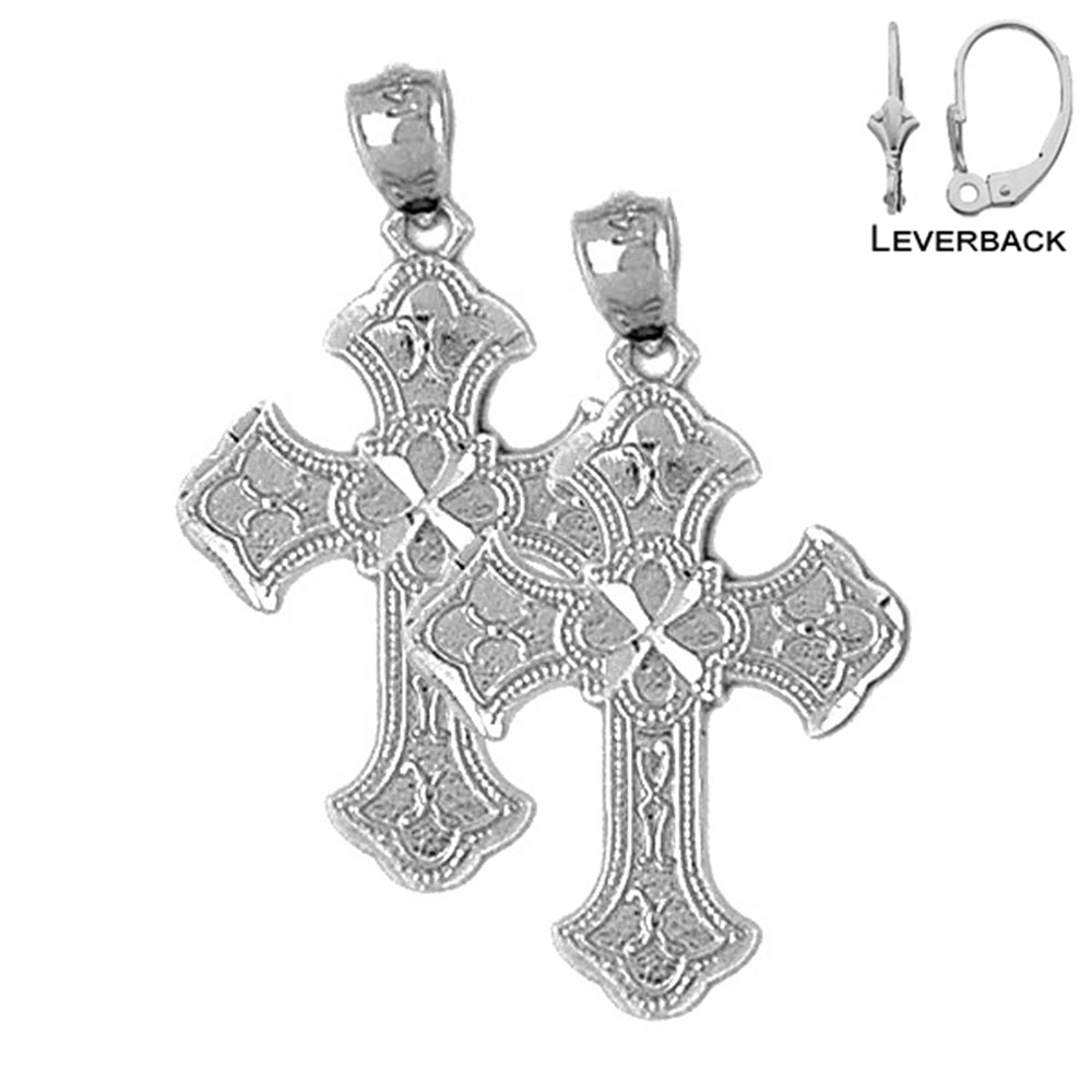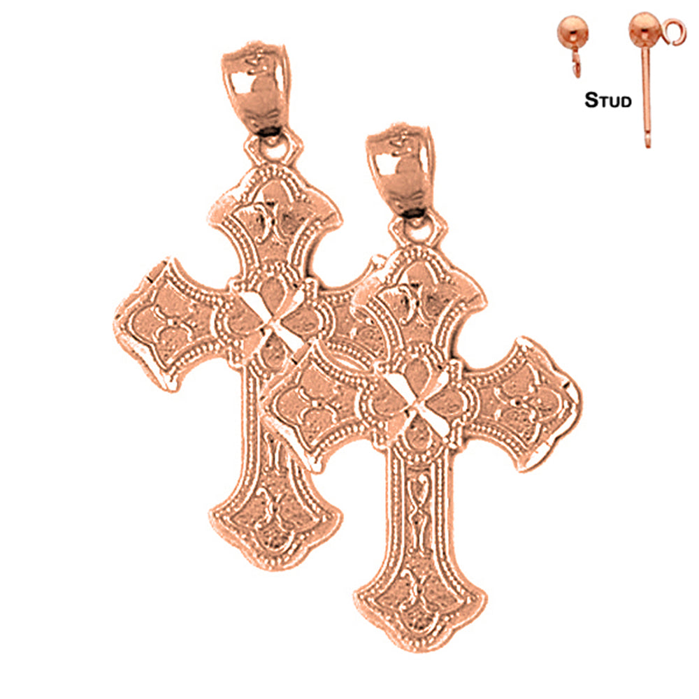 This is a gorgeous 14k yellow gold 31mm budded cross earrings. This 14k yellow gold earrings measures 31 mm in length by 19 mm width. JewelsObsession creates all gold jewelry in our state of the art manufacturing facility.