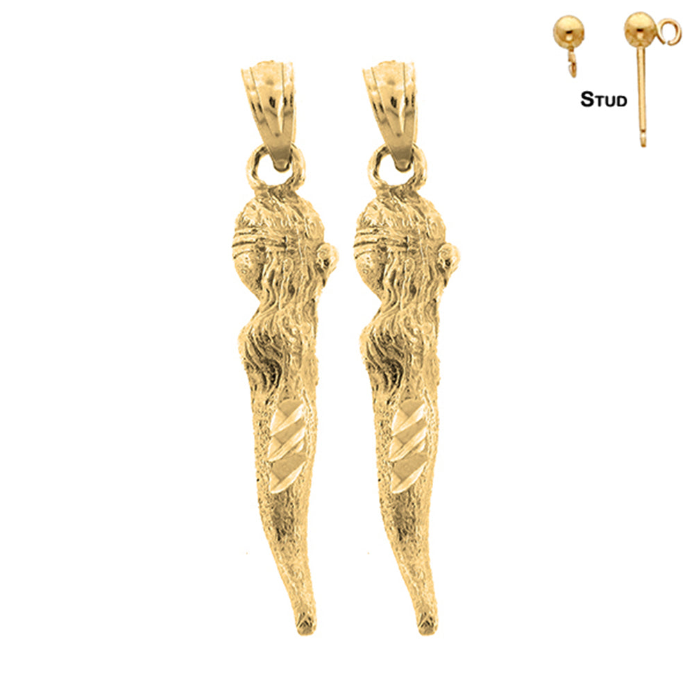 This is a beautiful 14k yellow gold 31mm solid italian horn earrings. This 14k yellow gold earrings measures 31 mm in length by 7 mm width. JewelsObsession creates all gold jewelry in our state of the art manufacturing facility.