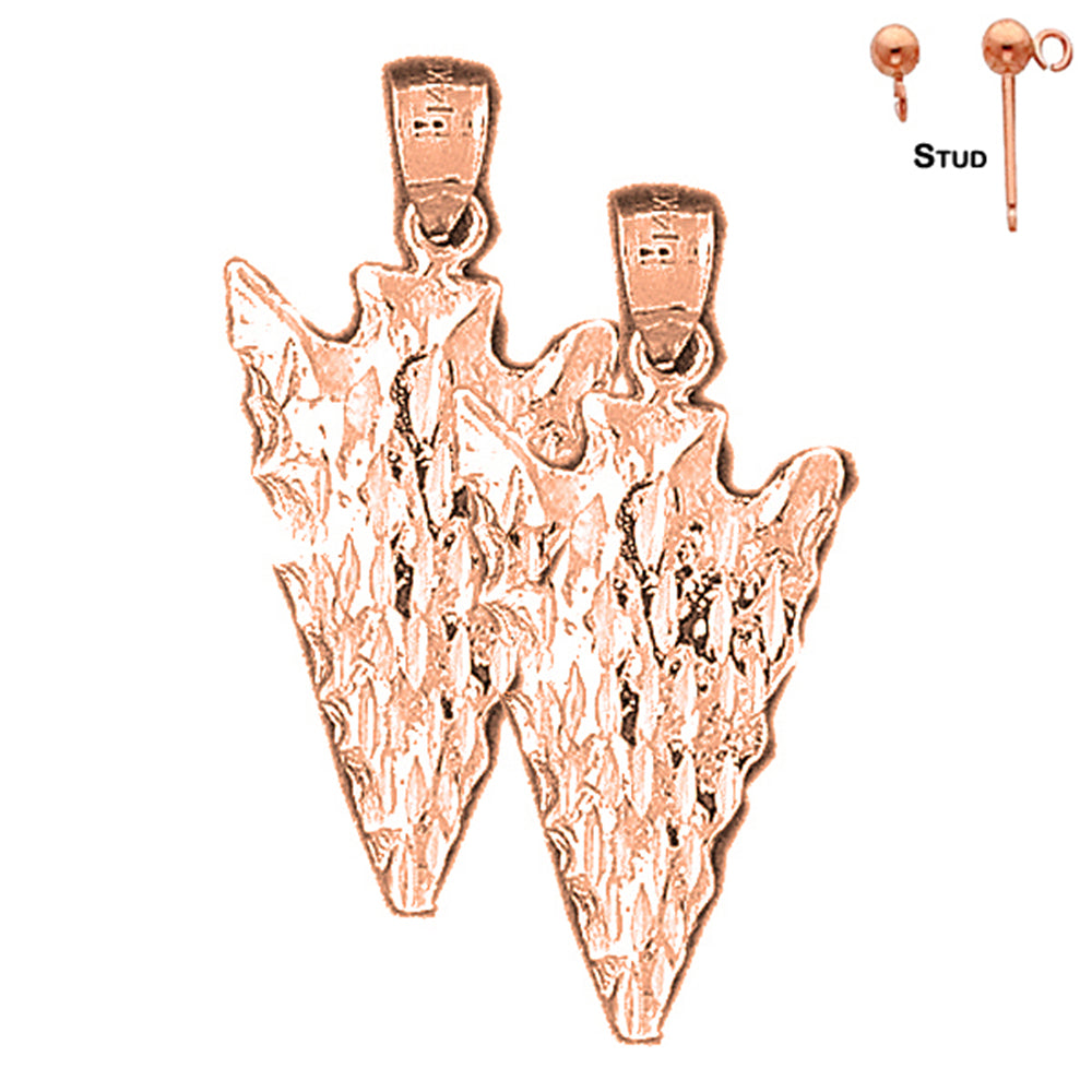14K or 18K Gold 32mm Arrowhead Earrings
