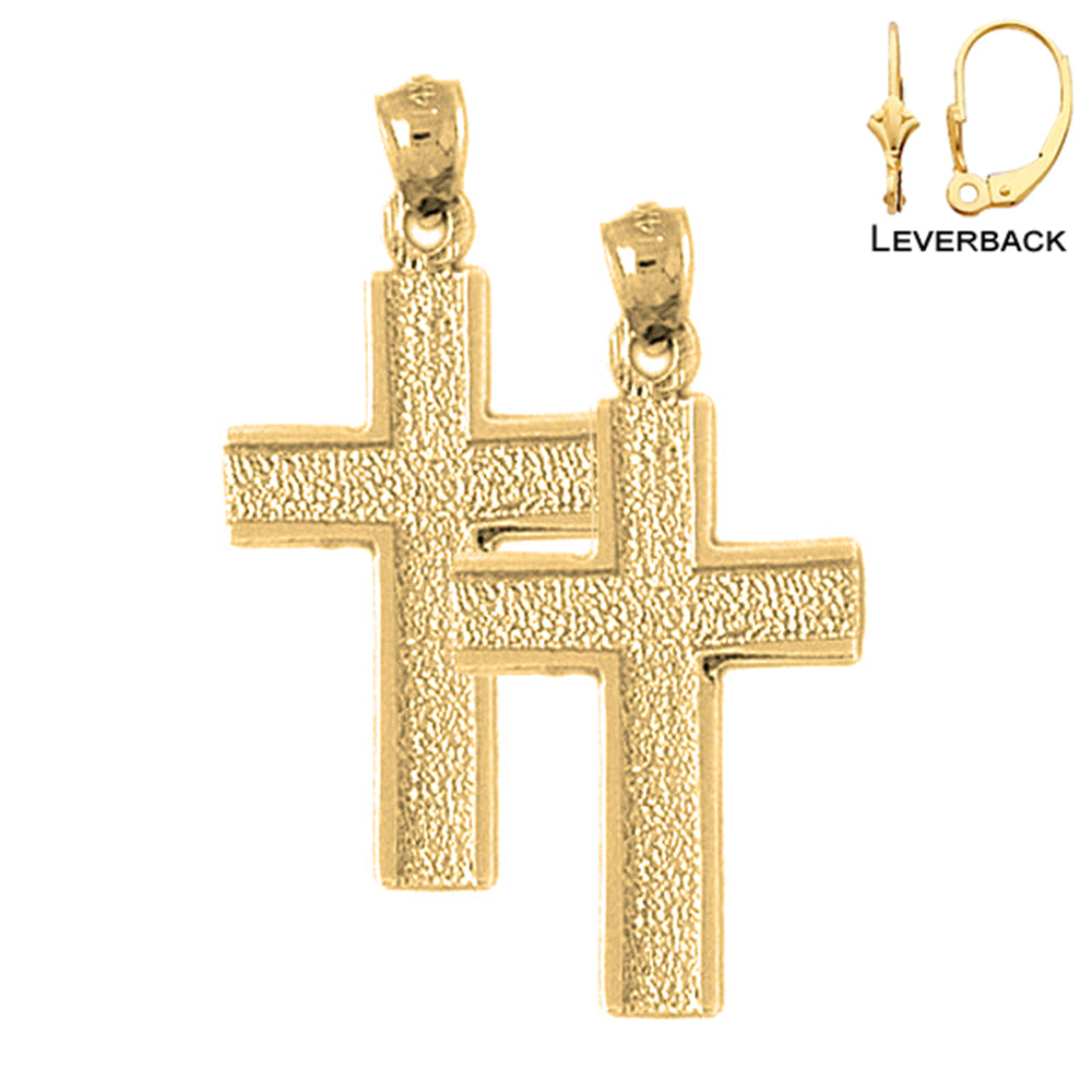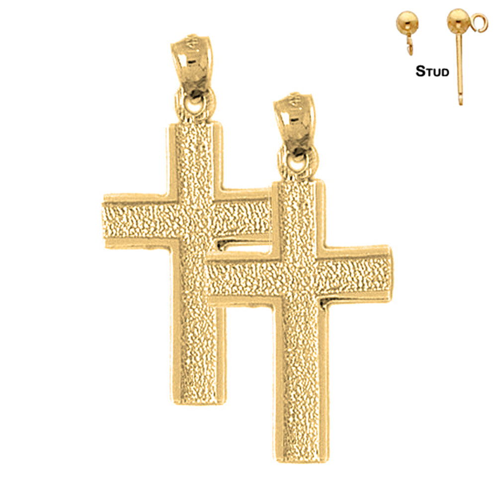 This is a stunning 14k yellow gold 33mm latin cross earrings. This 14k yellow gold earrings measures 33 mm in length by 17 mm width. JewelsObsession creates all gold jewelry in our state of the art manufacturing facility.
