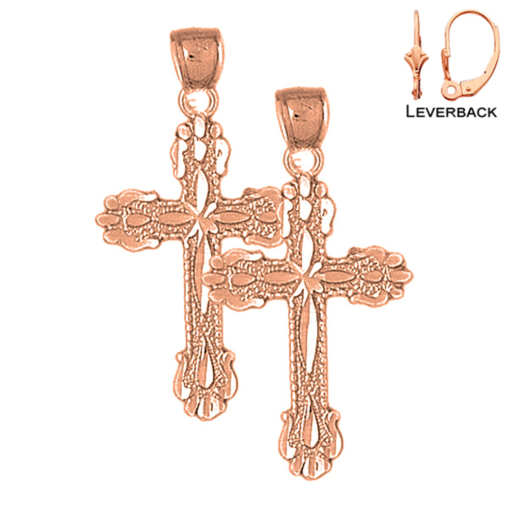 This is a stunning 14k yellow gold 36mm budded cross earrings. This 14k yellow gold earrings measures 36 mm in length by 20 mm width. JewelsObsession creates all gold jewelry in our state of the art manufacturing facility.