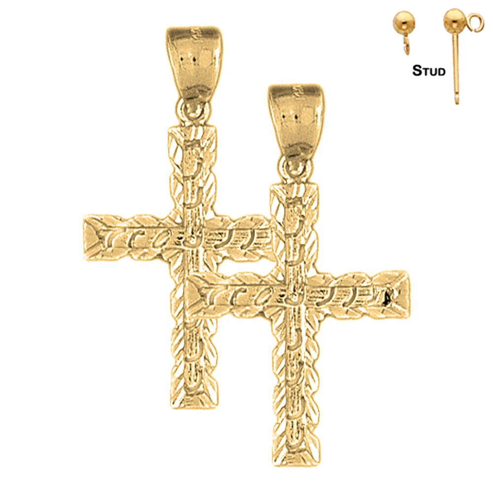 This is a beautiful 14k yellow gold 37mm latin cross earrings. This 14k yellow gold earrings measures 37 mm in length by 22 mm width. JewelsObsession creates all gold jewelry in our state of the art manufacturing facility.