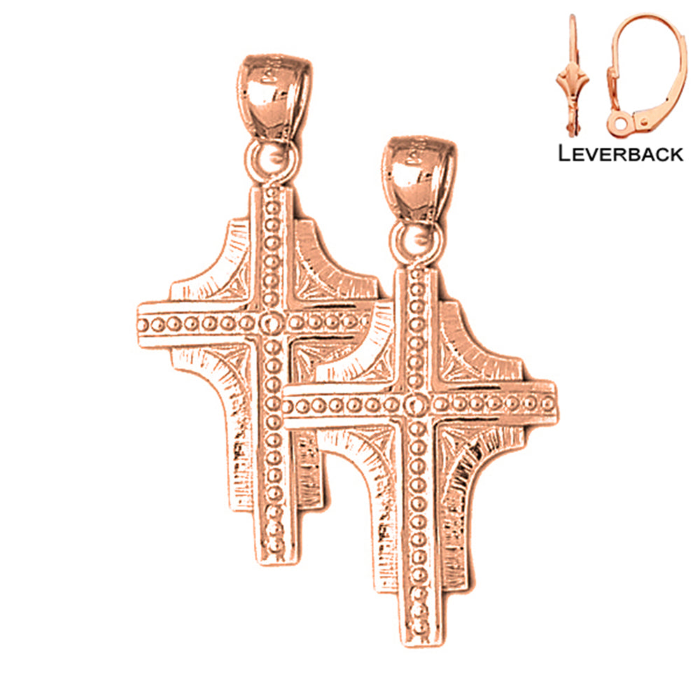 14K or 18K Gold 37mm Latin Cross Earrings