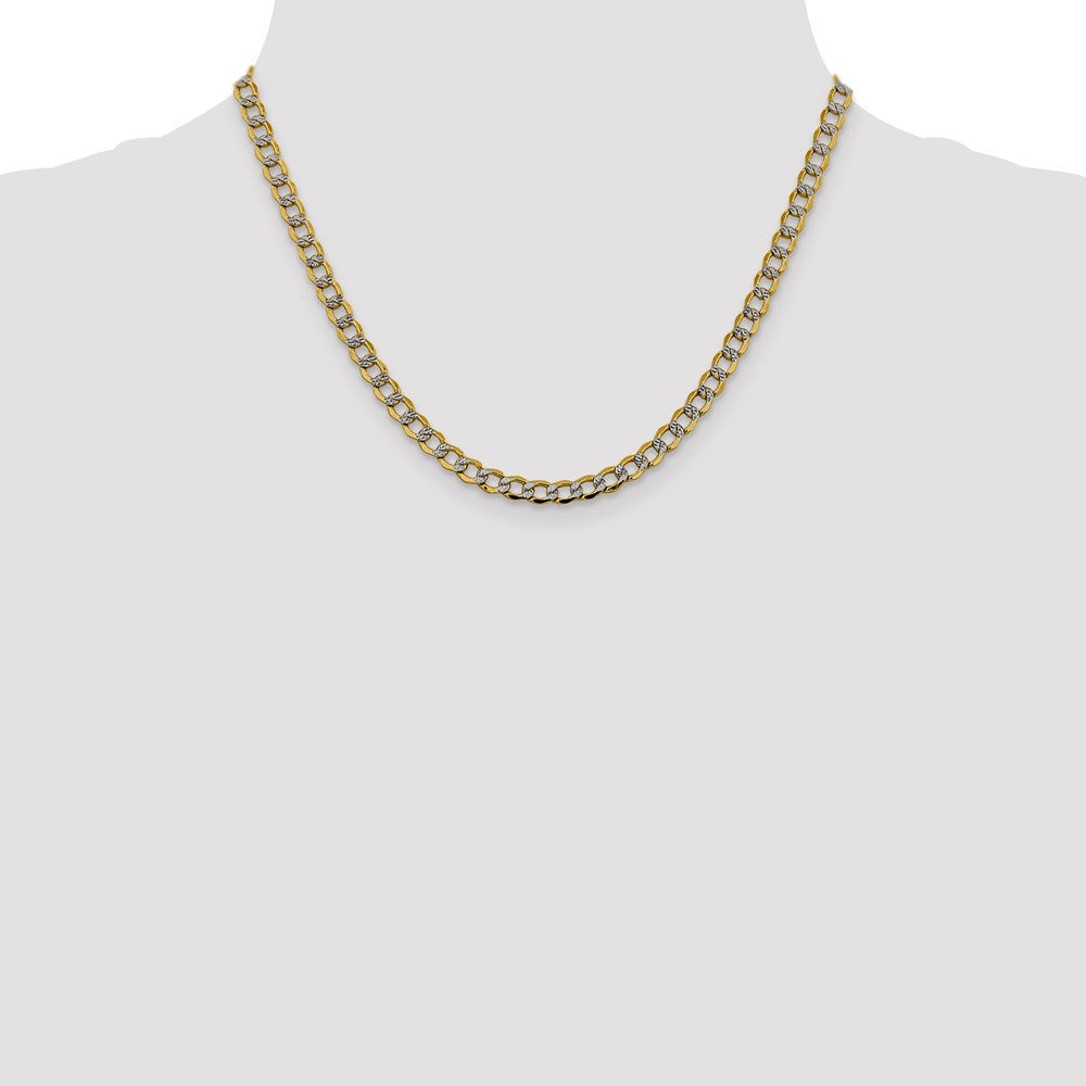 14K Yellow Gold 5.2mm Semi-solid with Rhodium Pave Curb Chain
