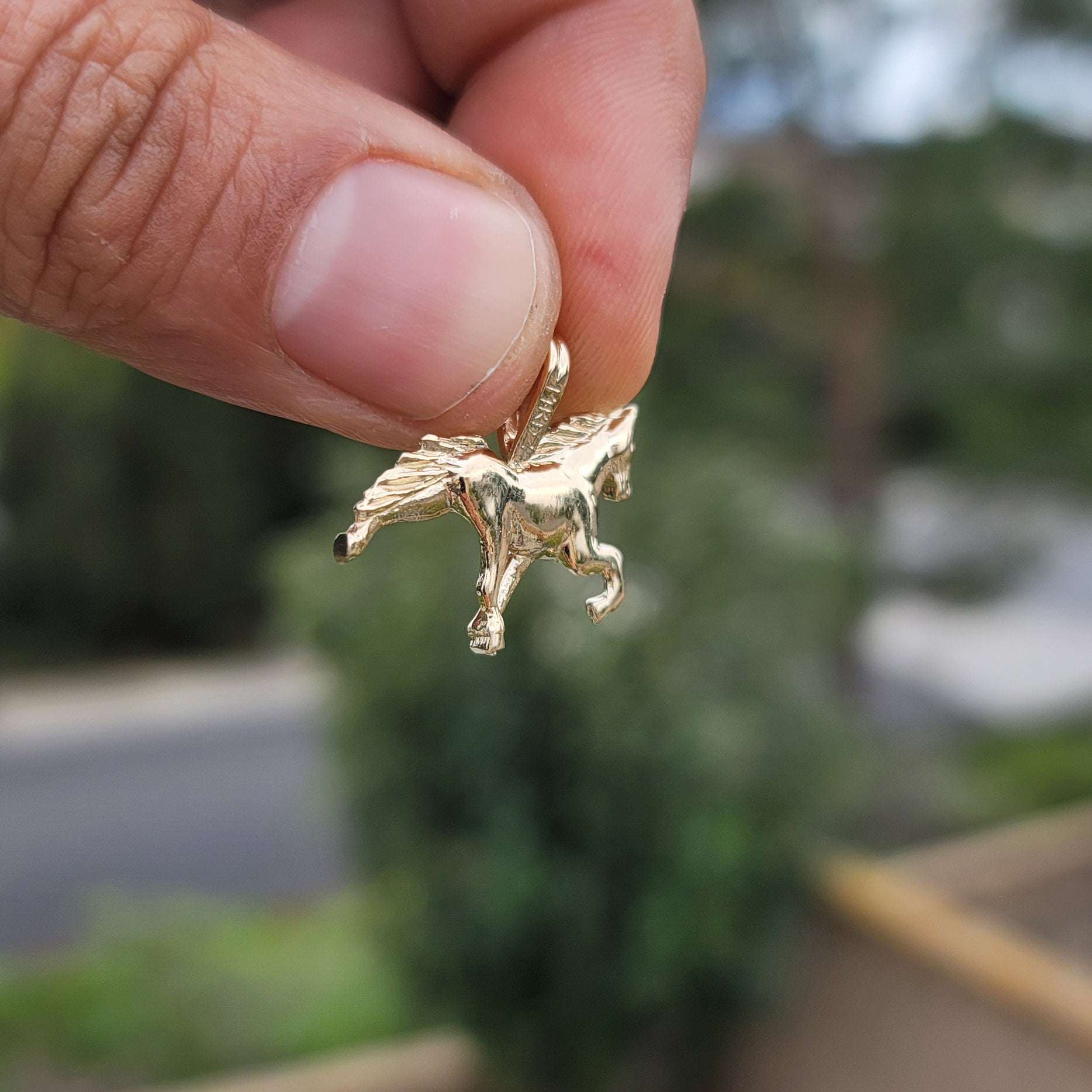 This gorgeous 10K, 14K or 18K gold 3-d horse pendant. This 10K, 14K or 18K gold pendant measures 22 mm in length by 23 mm in width. Measurement includes bale. JewelsObsession creates all gold jewelry in our state of the art manufacturing facility.