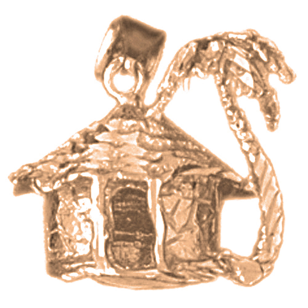 10K, 14K or 18K Gold 3D Palm Tree And Hut Pendant