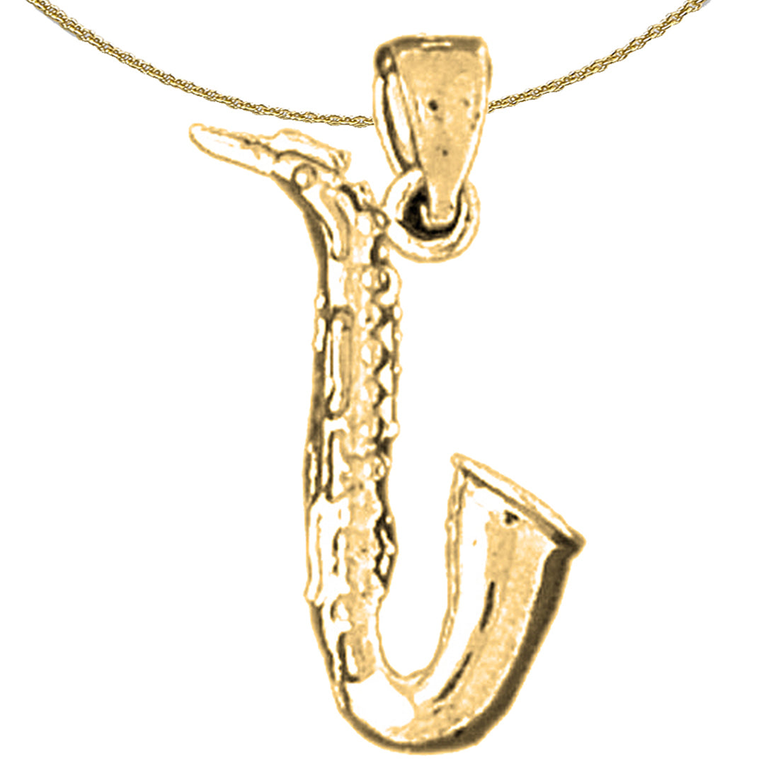 This is a beautiful 14K or 18K gold 3-d saxophone pendant. This 14K or 18K gold pendant measures 22 mm in length by 17 mm in width. Measurement includes bale. JewelsObsession creates all gold jewelry in our state of the art manufacturing facility.