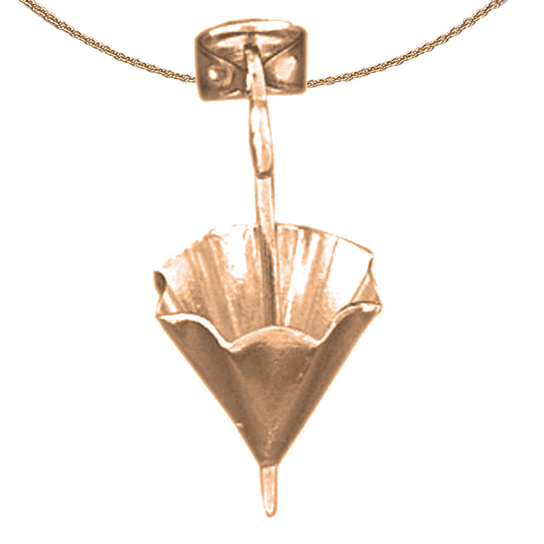 This is an elegant 14K or 18K gold 3-d umbrella pendant. This 14K or 18K gold pendant measures 23 mm in length by 11 mm in width. Measurement includes bale. JewelsObsession creates all gold jewelry in our state of the art manufacturing facility.