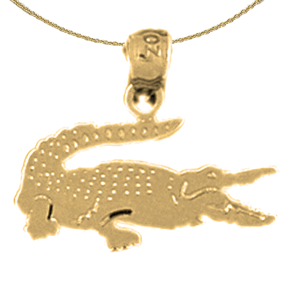 This is a beautiful 14K or 18K gold aligator pendant. This 14K or 18K gold pendant measures 16 mm in length by 19 mm in width. Measurement includes bale. JewelsObsession creates all gold jewelry in our state of the art manufacturing facility.