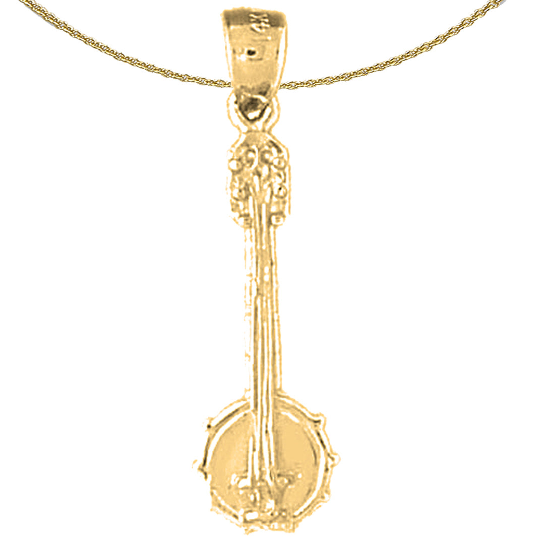 This is an elegant 14K or 18K gold banjo pendant. This 14K or 18K gold pendant measures 33 mm in length by 8 mm in width. Measurement includes bale. JewelsObsession creates all gold jewelry in our state of the art manufacturing facility.