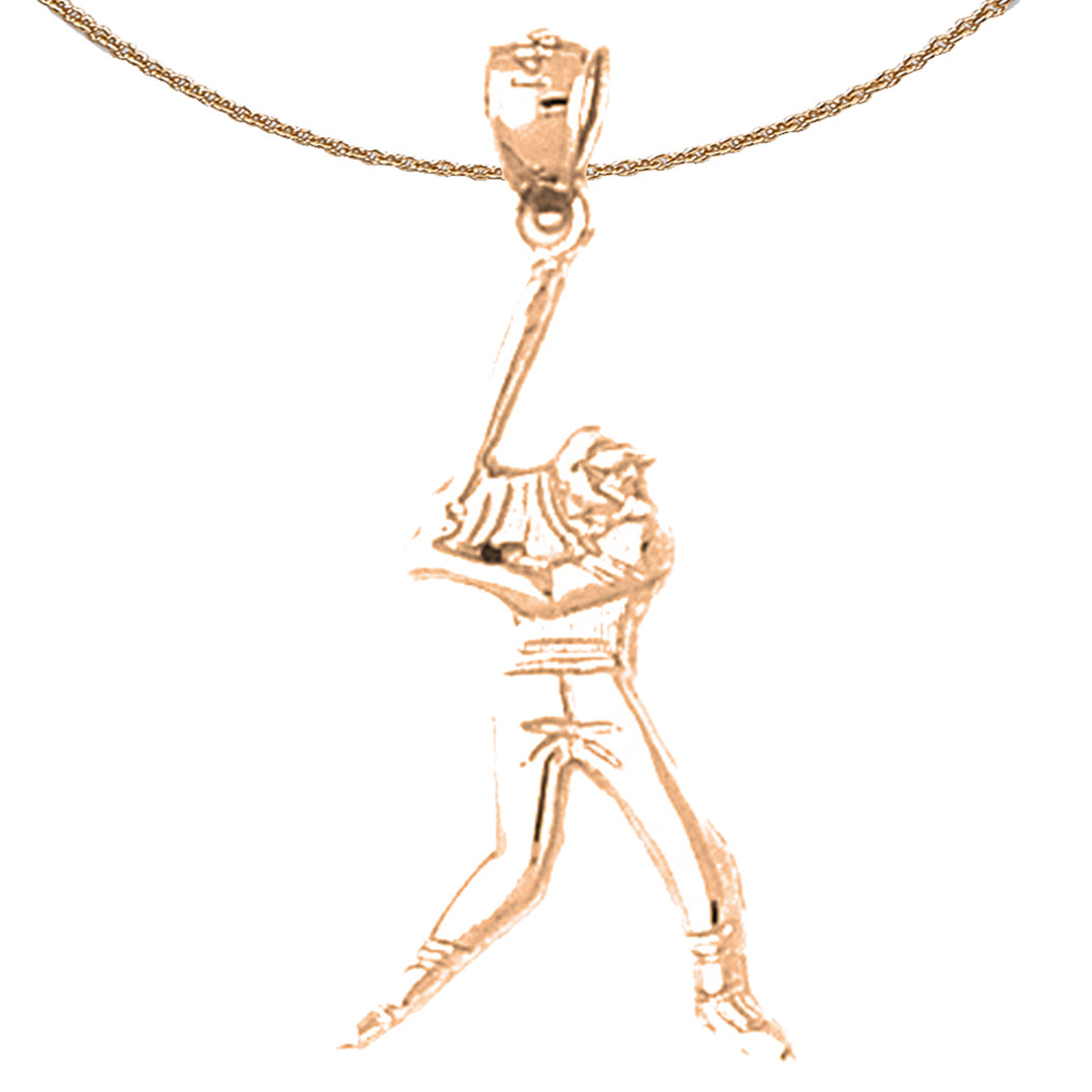 This is an elegant 14K or 18K gold baseball player pendant. This 14K or 18K gold pendant measures 28 mm in length by 13 mm in width. Measurement includes bale. JewelsObsession creates all gold jewelry in our state of the art manufacturing facility.