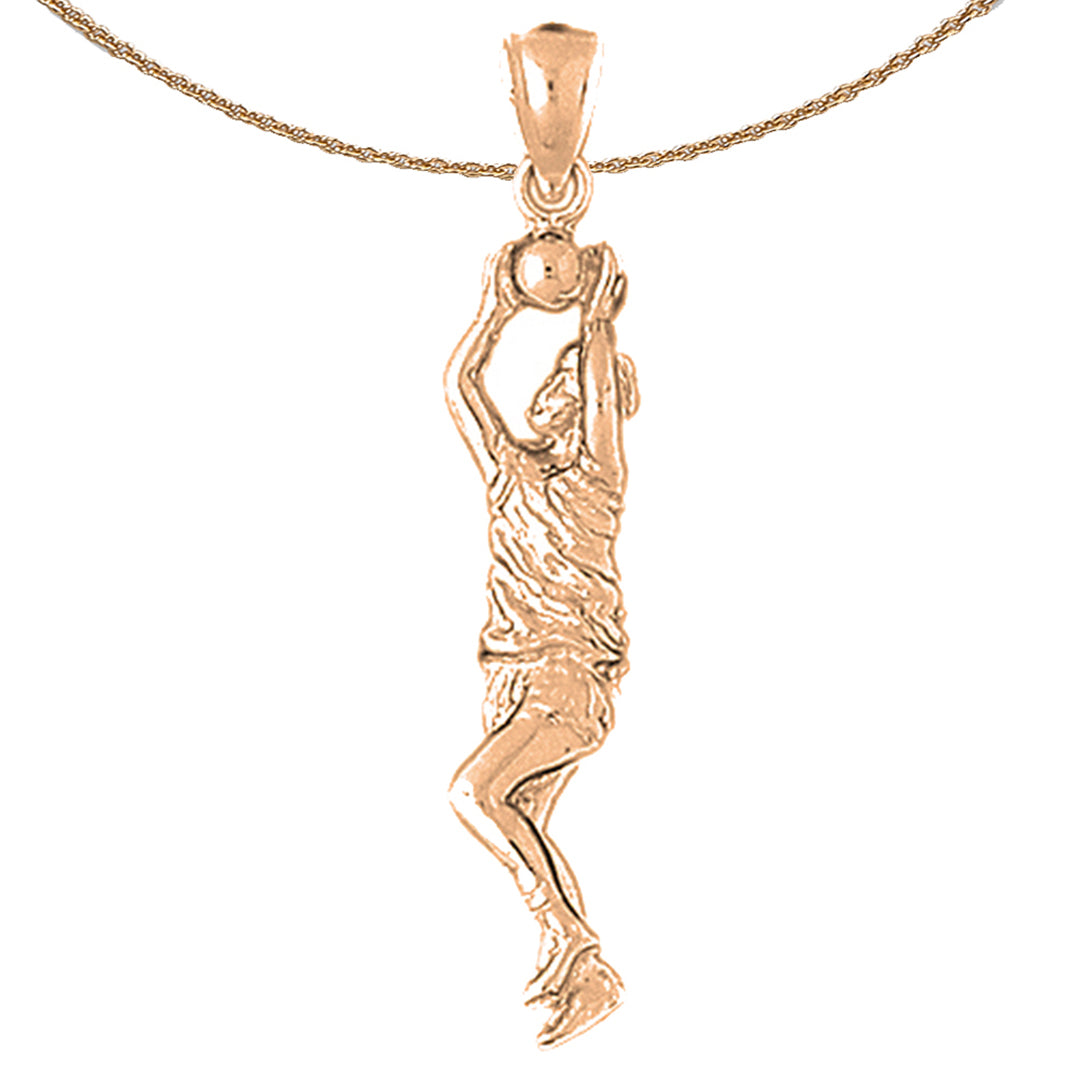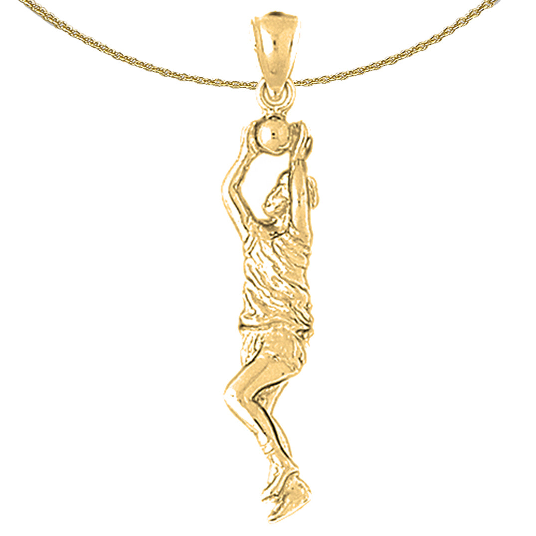 This gorgeous 10K, 14K or 18K gold basketball player pendant. This 10K, 14K or 18K gold pendant measures 45 mm in length by 8 mm in width. Measurement includes bale. JewelsObsession creates all gold jewelry in our state of the art manufacturing facility.