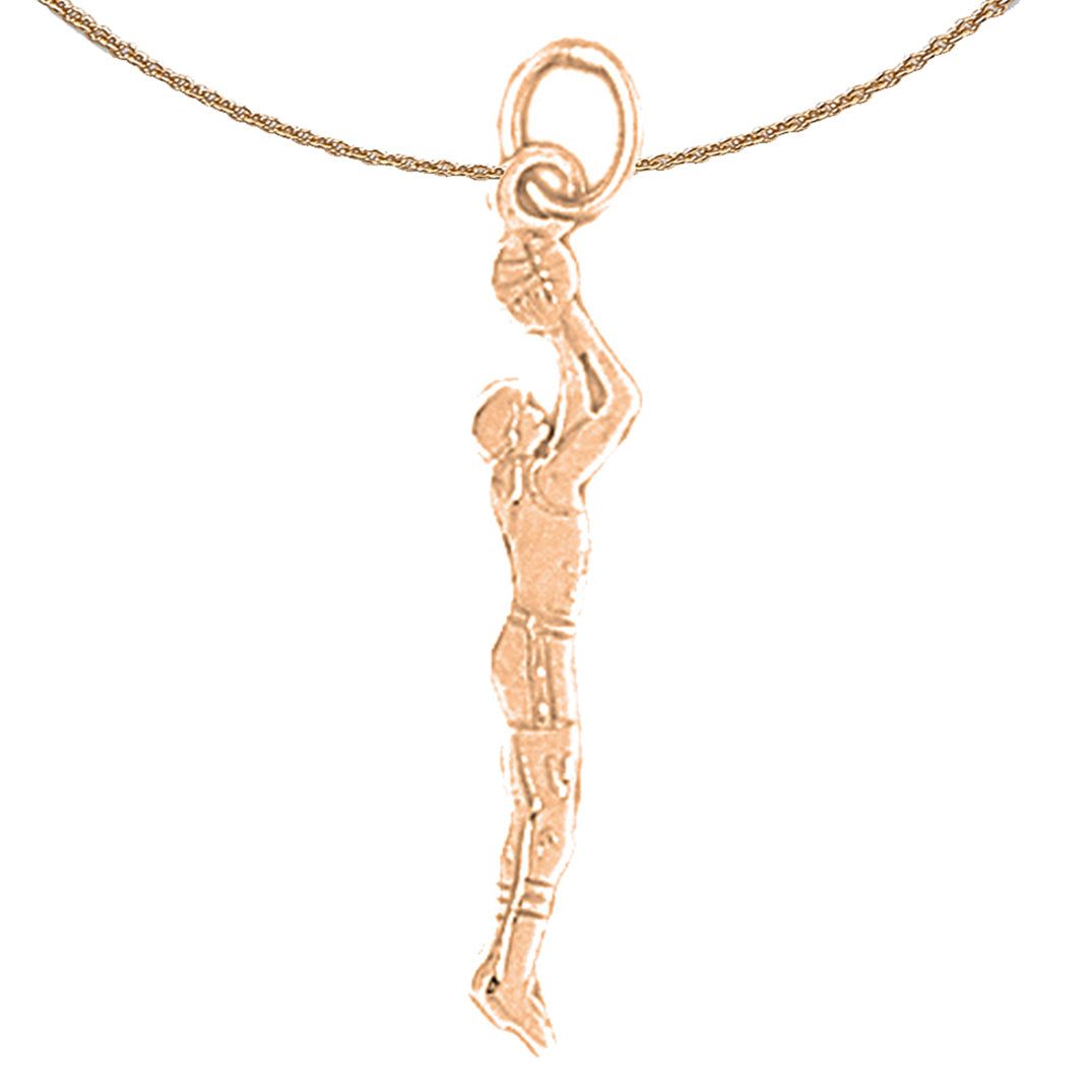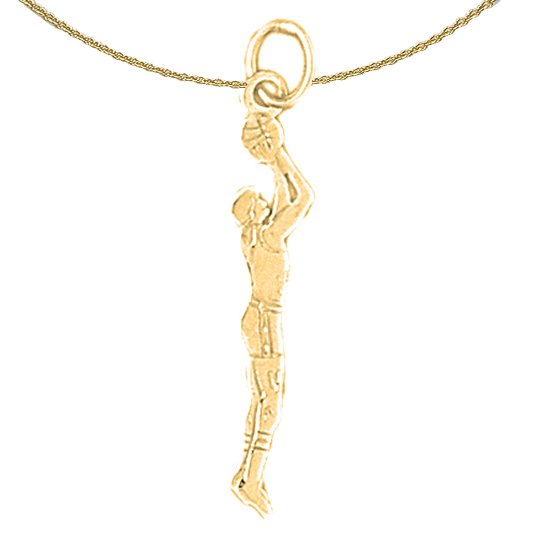 This is an elegant 14K or 18K gold basketball player pendant. This 14K or 18K gold pendant measures 31 mm in length by 6 mm in width. Measurement includes bale. JewelsObsession creates all gold jewelry in our state of the art manufacturing facility.