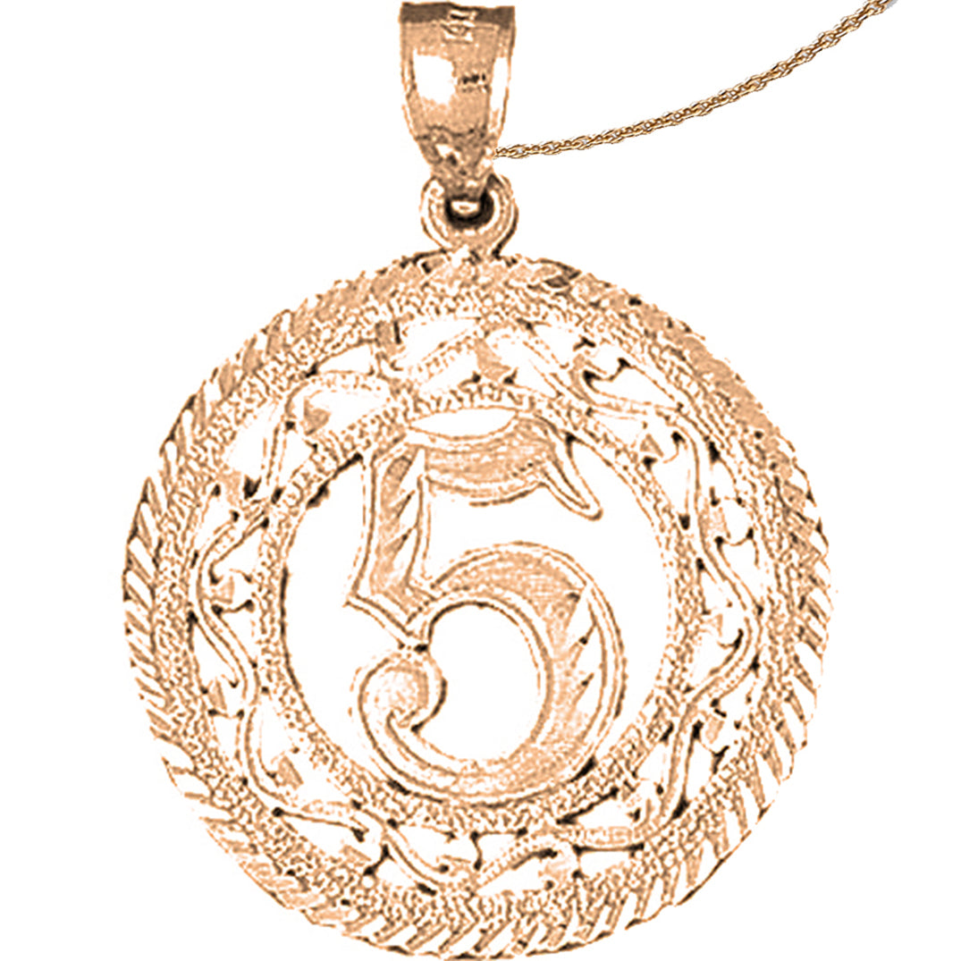 10K, 14K or 18K Gold Bezeled #5, Five Pendant