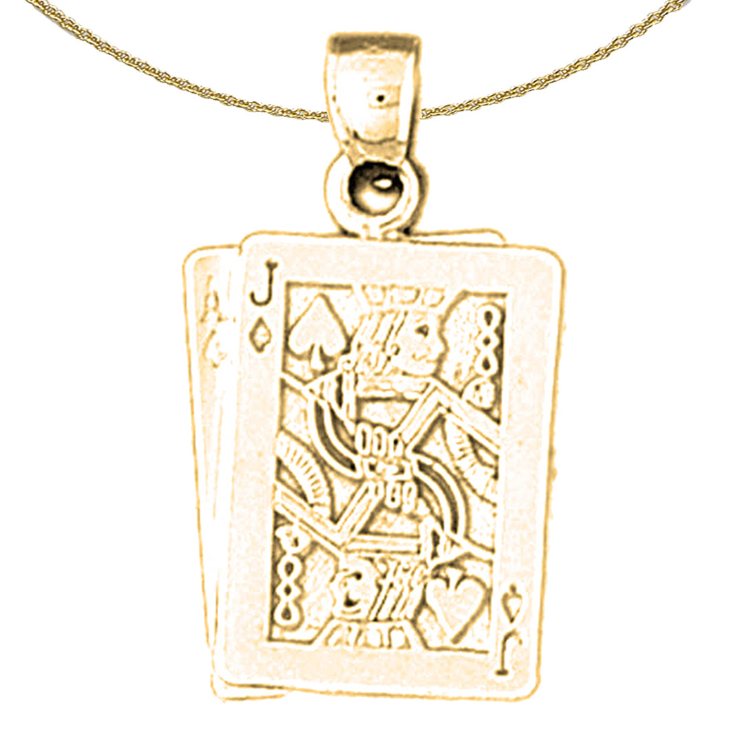This is an elegant 14K or 18K gold playing card pendant. This 14K or 18K gold pendant measures 27 mm in length by 15 mm in width. Measurement includes bale. JewelsObsession creates all gold jewelry in our state of the art manufacturing facility.