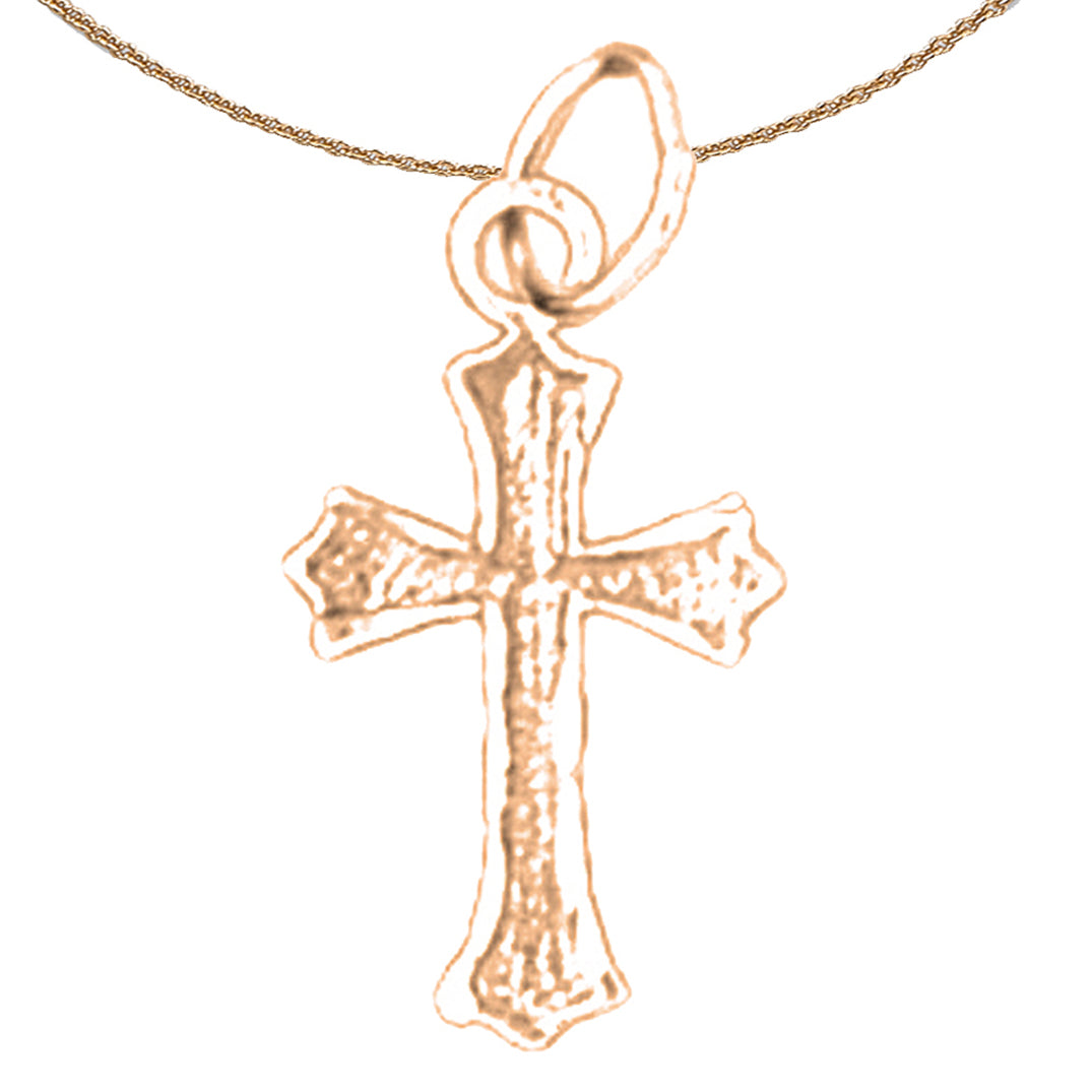 This is an elegant 14K or 18K gold cross pendant. This 14K or 18K gold pendant measures 20 mm in length by 10 mm in width. Measurement includes bale. JewelsObsession creates all gold jewelry in our state of the art manufacturing facility.