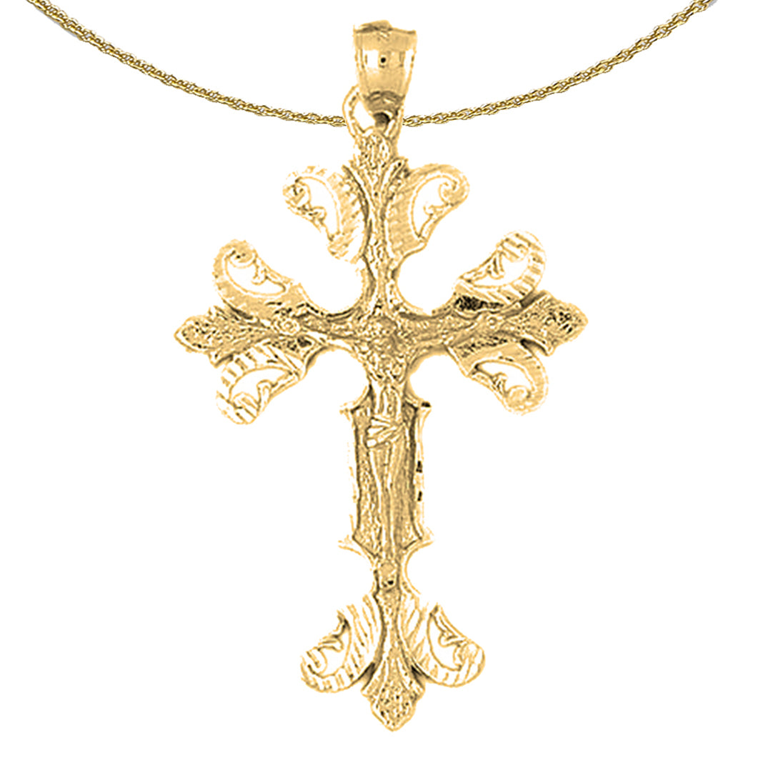 10K, 14K or 18K Gold Budded Crucifix Pendant