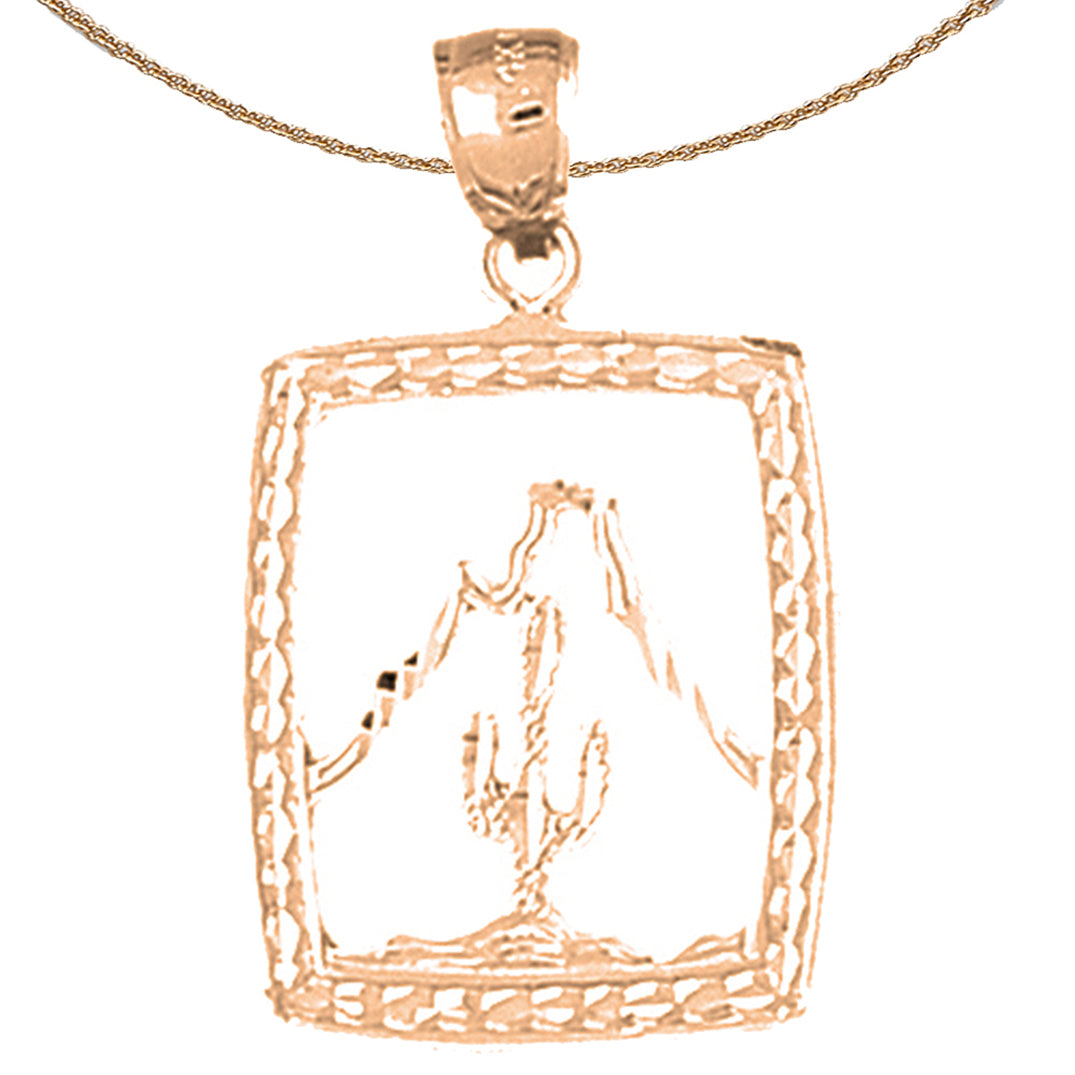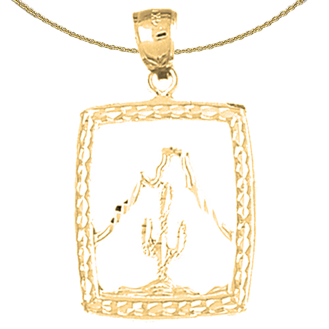 This is a stunning 10K, 14K or 18K gold cactus with mountain pendant. This 10K, 14K or 18K gold pendant measures in length by in width. Measurement includes bale. JewelsObsession creates all gold jewelry in our state of the art manufacturing facility.
