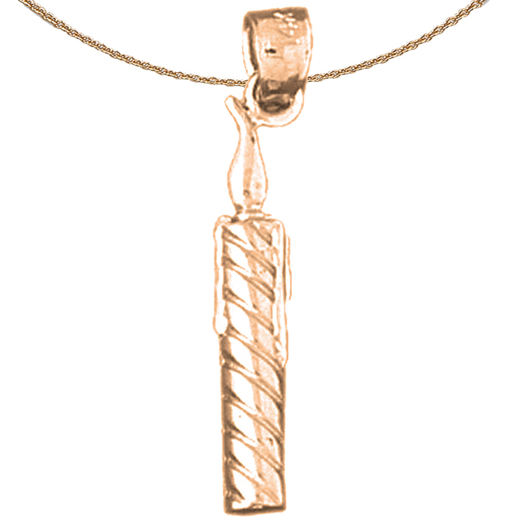 This gorgeous 14K or 18K gold candle pendant. This 14K or 18K gold pendant measures 26 mm in length by 5 mm in width. Measurement includes bale. JewelsObsession creates all gold jewelry in our state of the art manufacturing facility.
